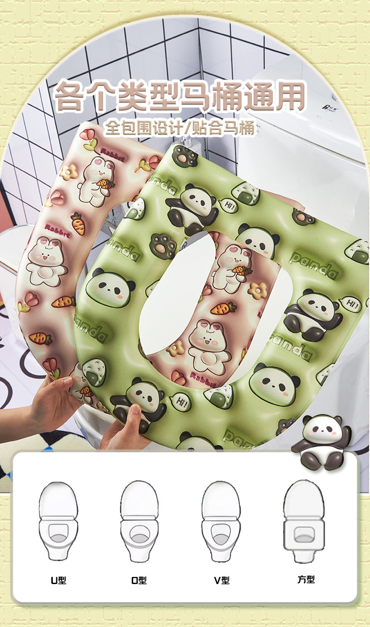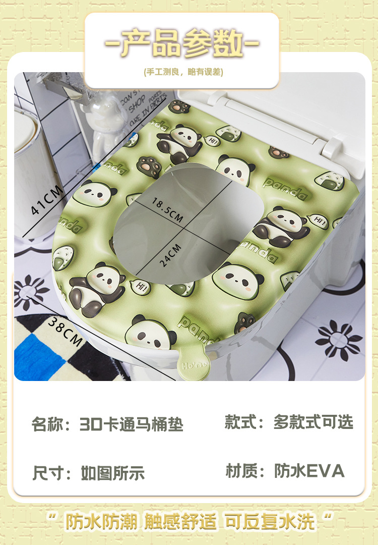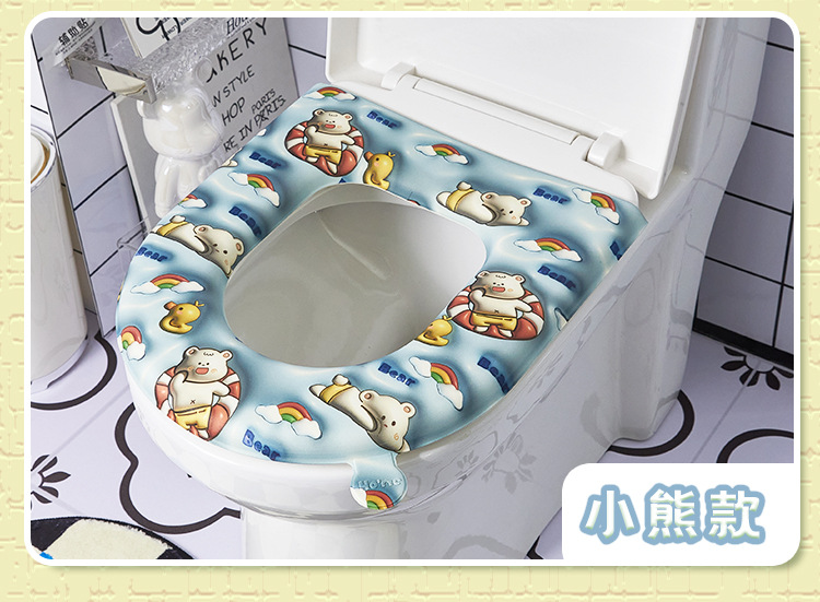 「四色可选!3D印花版」一颗开心糖EVA3D马桶垫 可爱卡通坐垫四季通用居家日用粘贴式免洗坐便器套