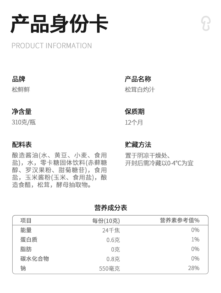 【自营】松鲜鲜松茸白灼汁310g*2瓶