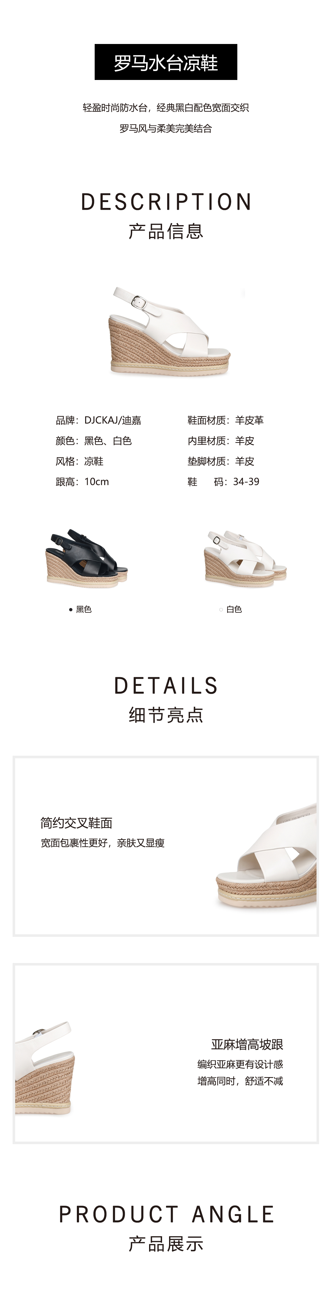 豪麟名鞋奥莱迪嘉女鞋凉鞋羊皮革DJHJA51WL001黑色 原价1660元