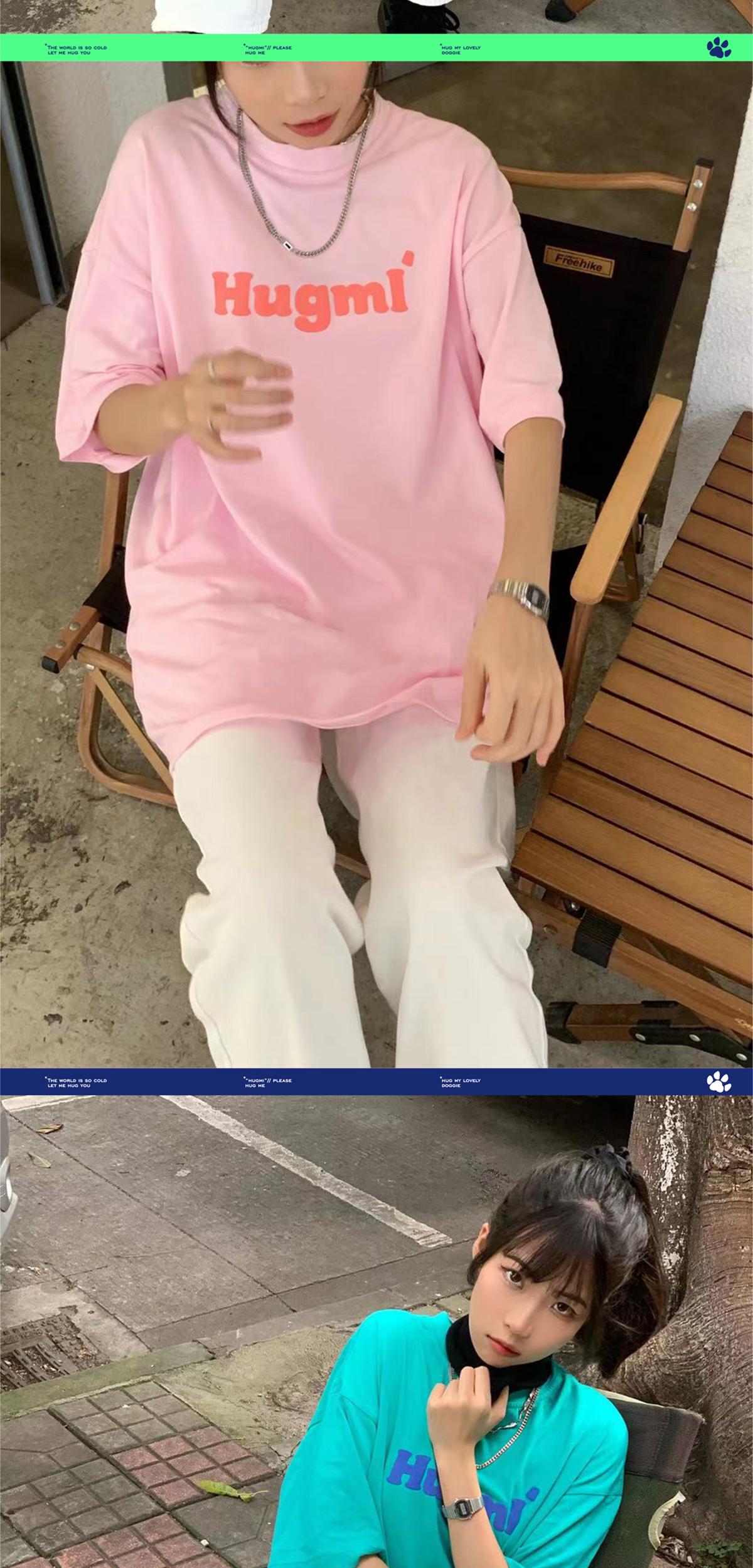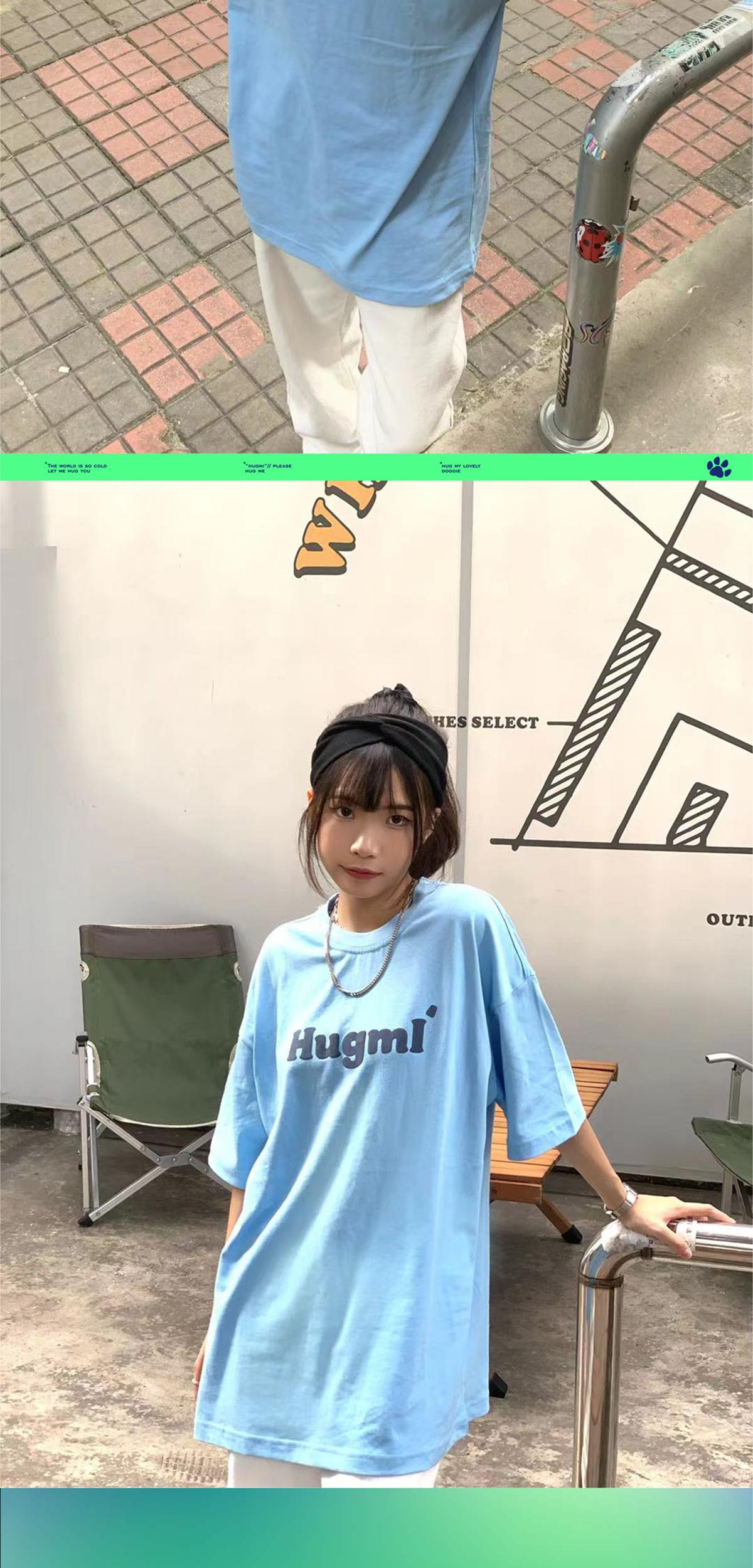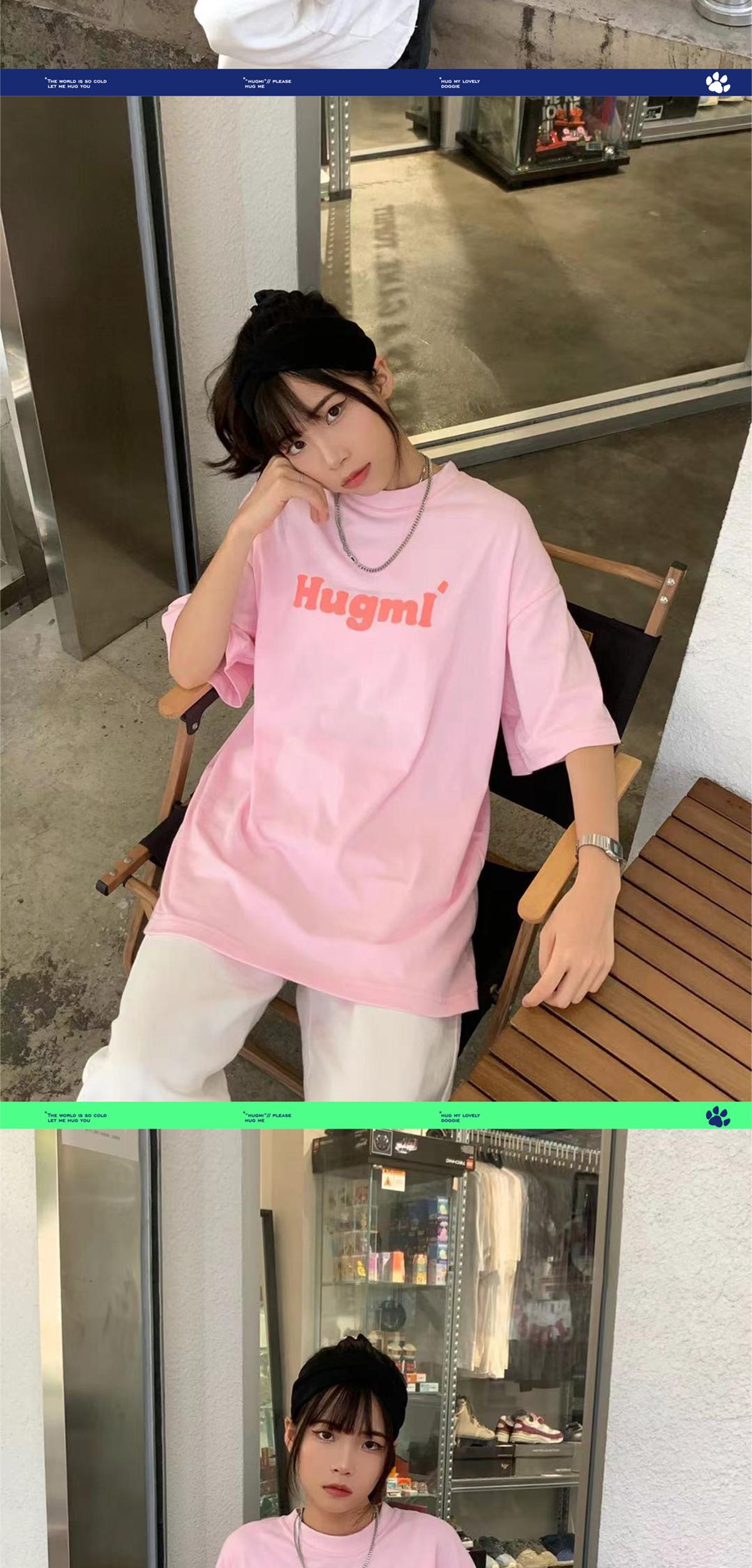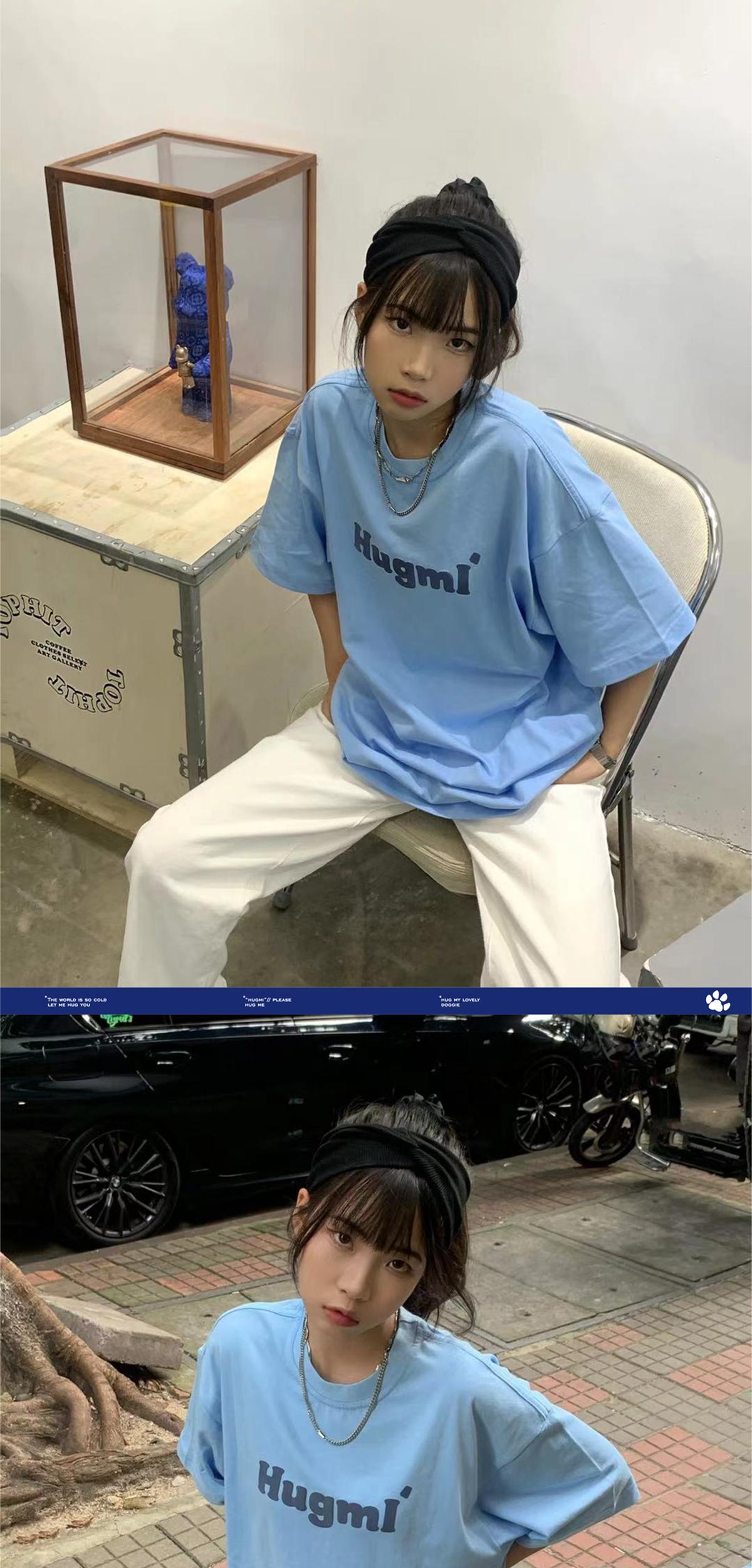 Hugmi Brand夏季冰淇淋色短袖宽松百搭ins休闲LOGO印花新款T恤