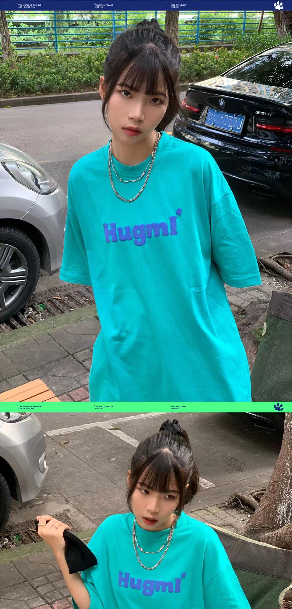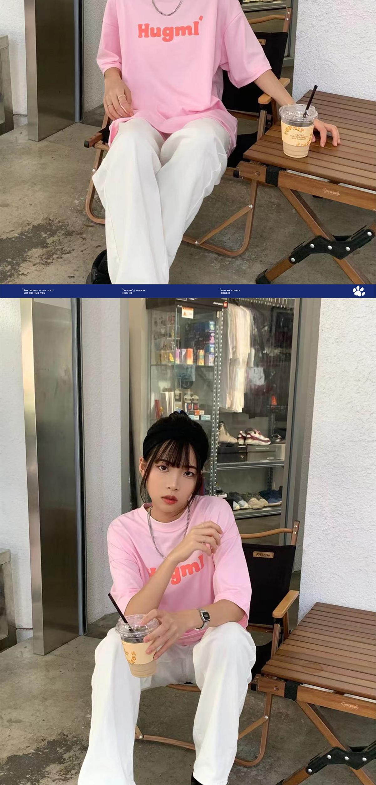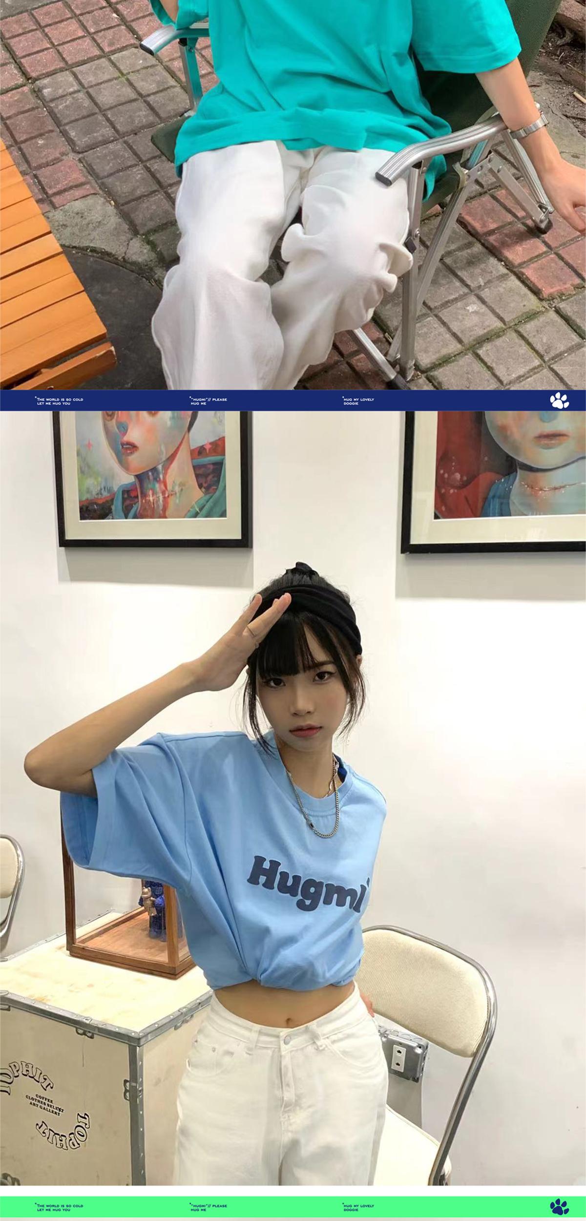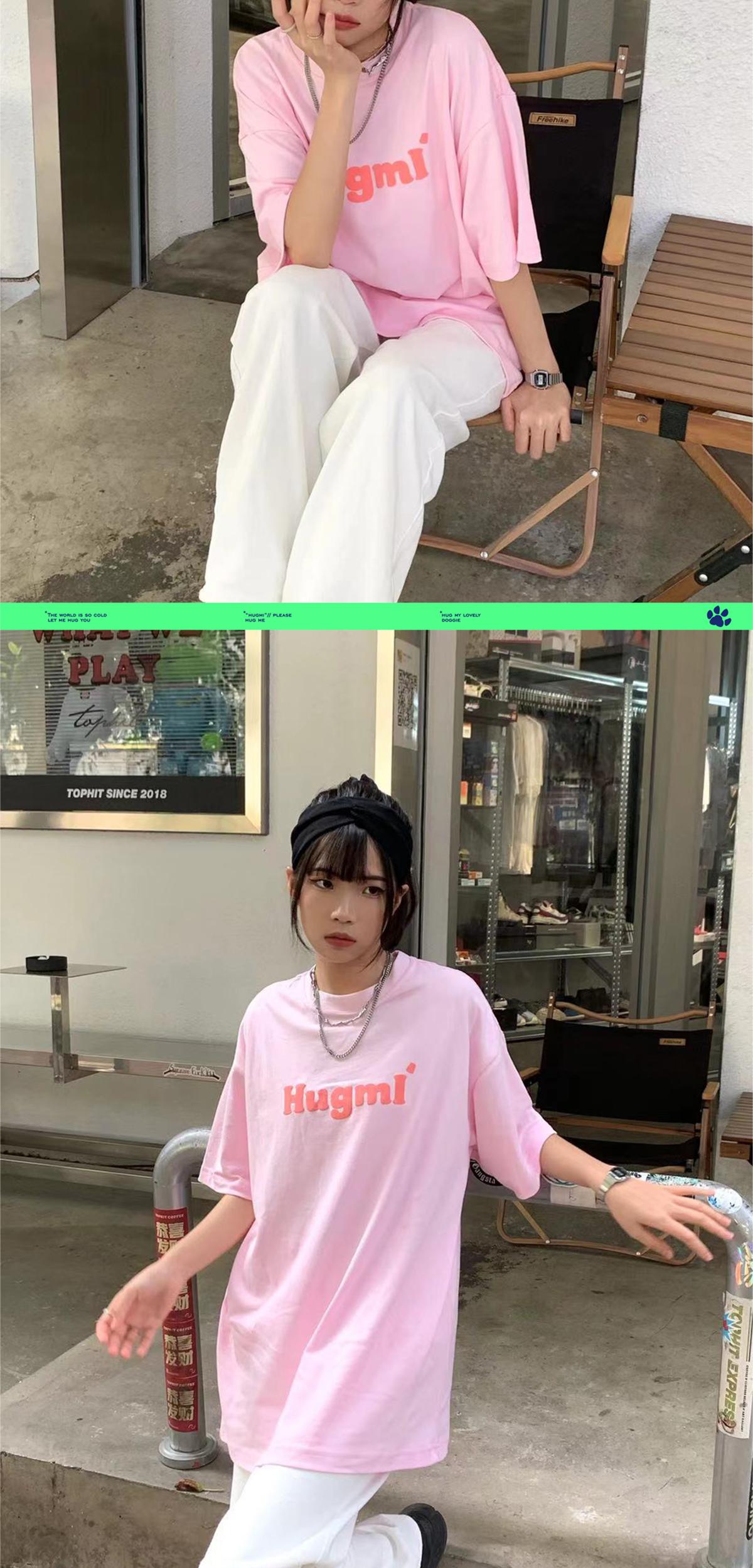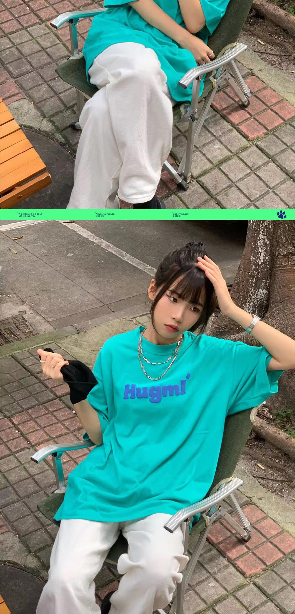 Hugmi Brand夏季冰淇淋色短袖宽松百搭ins休闲LOGO印花新款T恤