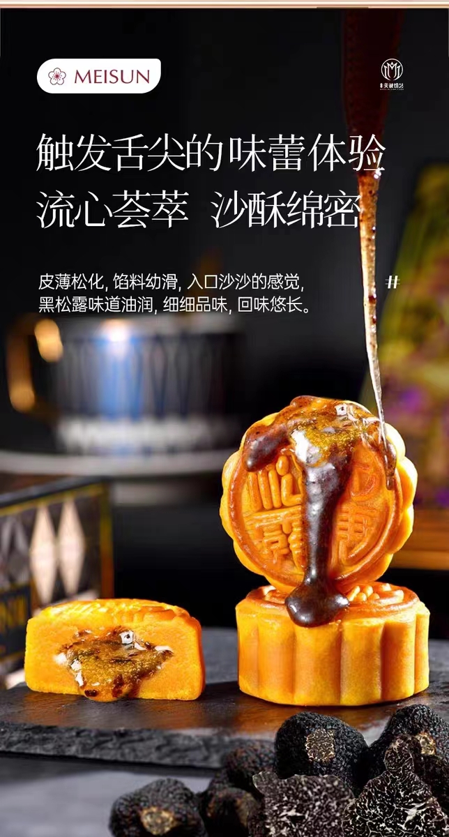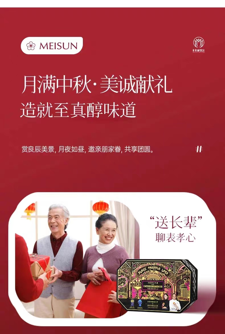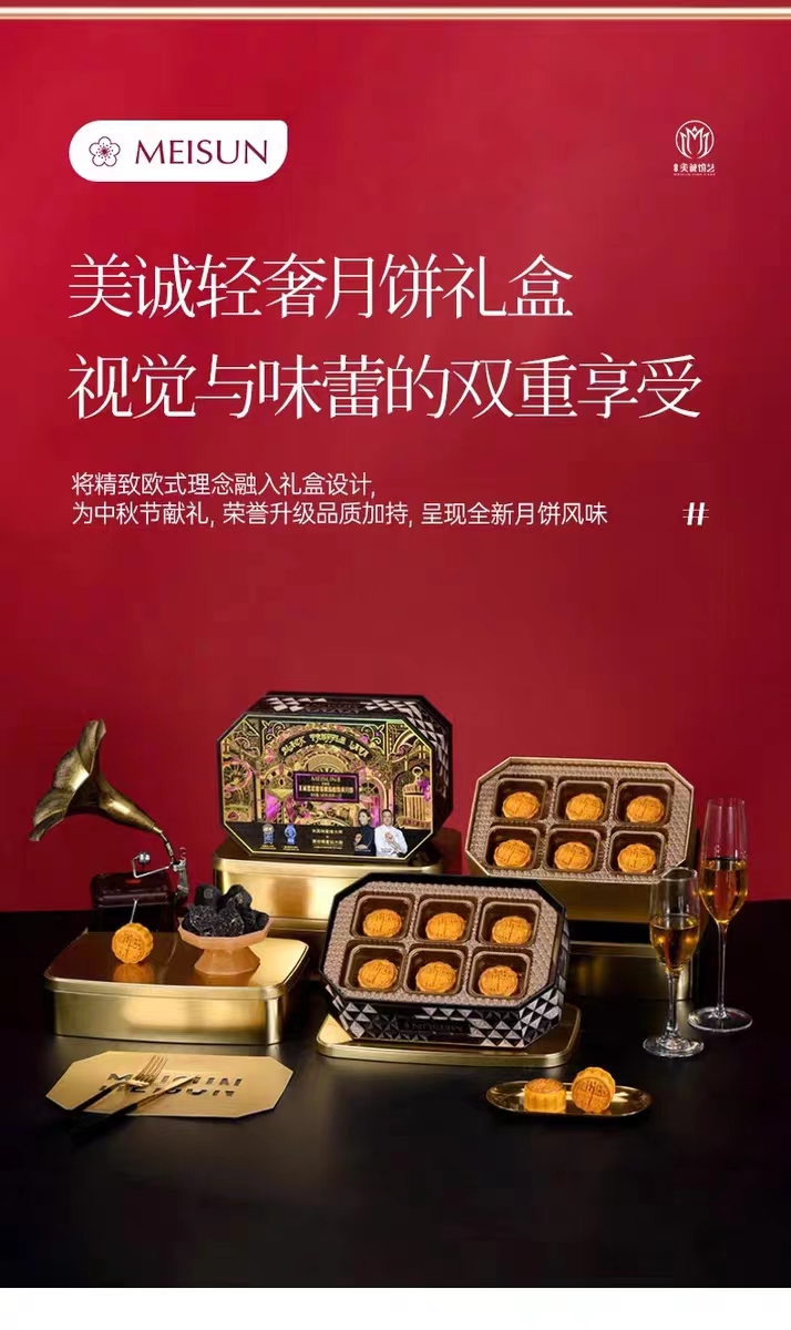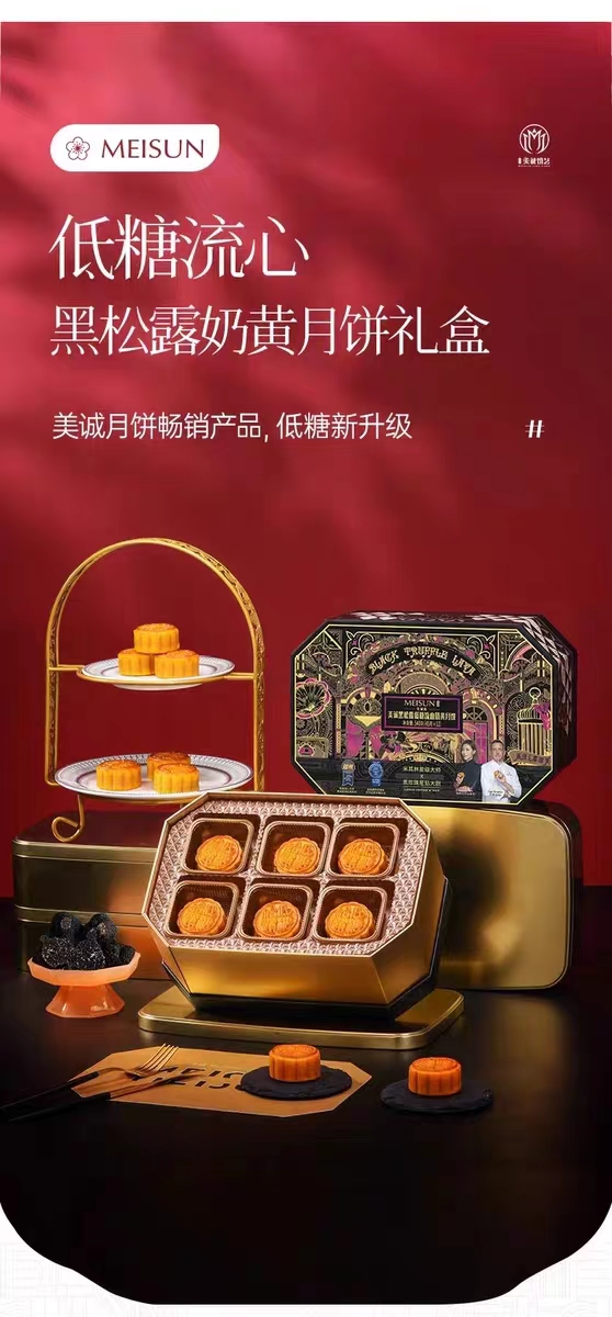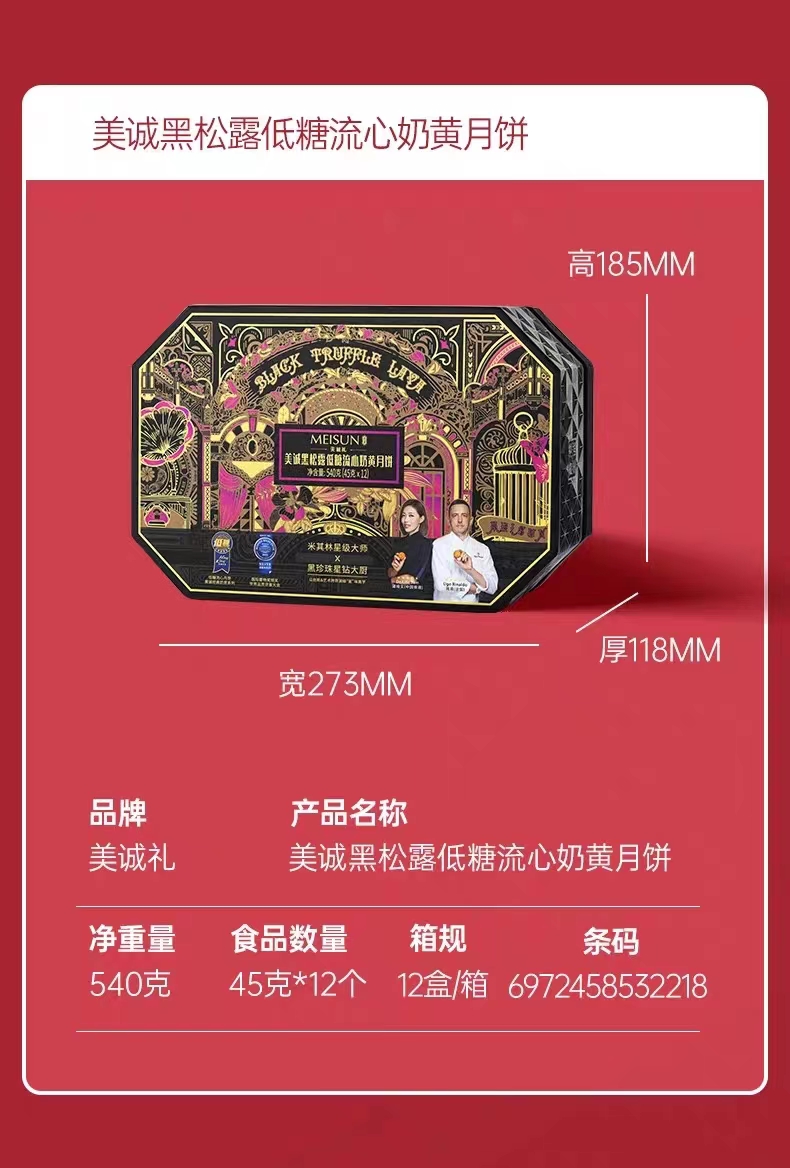 【美诚】流心黑松露低糖奶黄月饼礼盒45g*12粒装