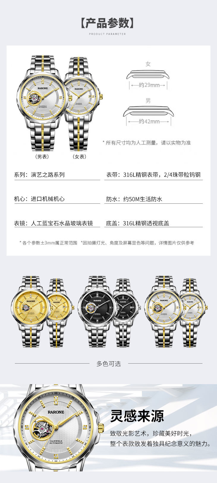 RARONE雷诺表演艺系列机械对表886020