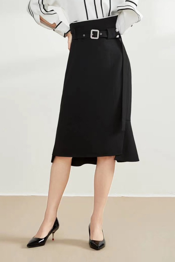 CHUANMENG 高腰绑带装饰开衩半裙 11167