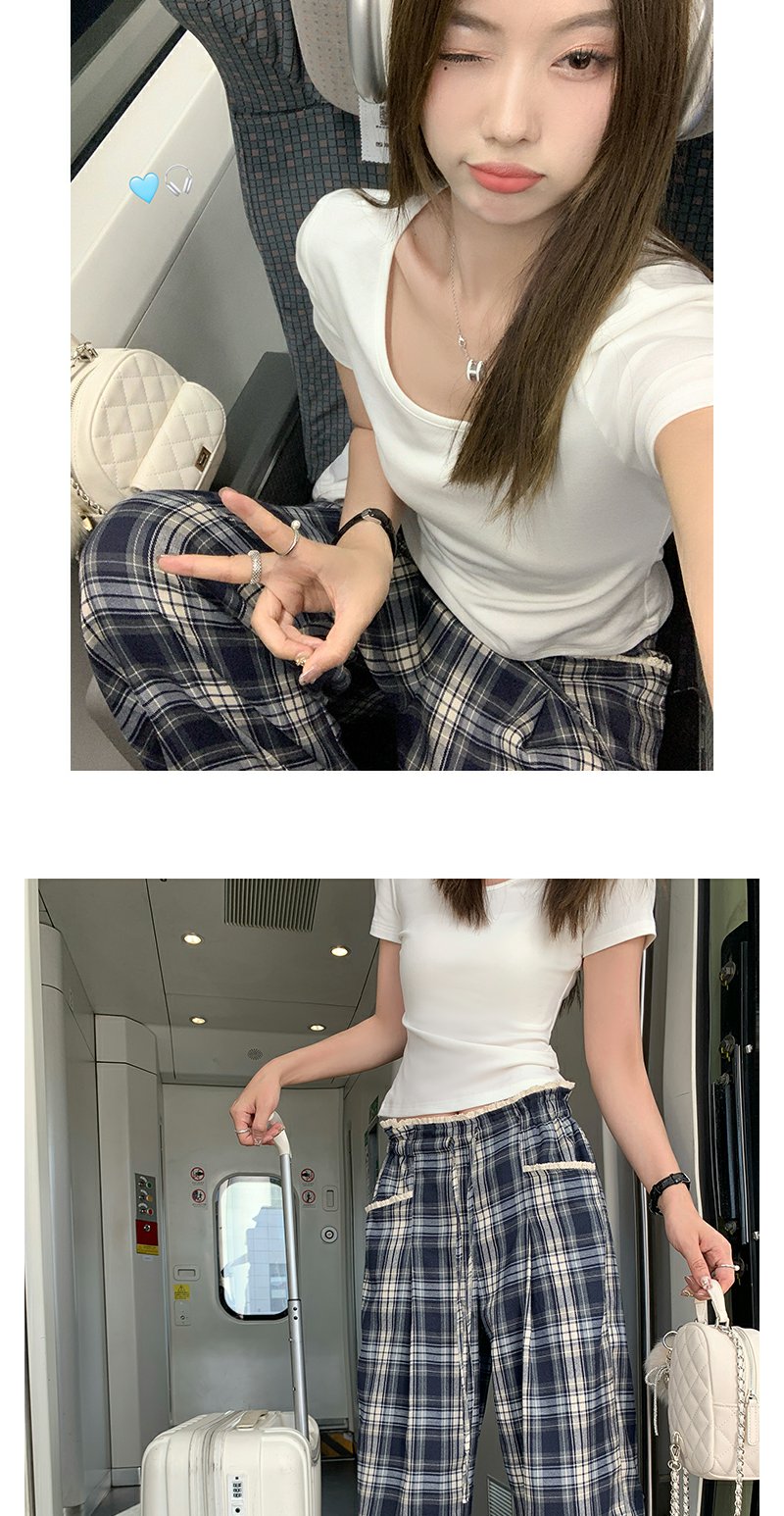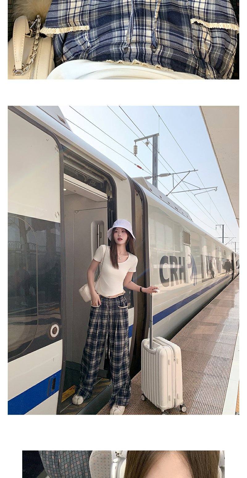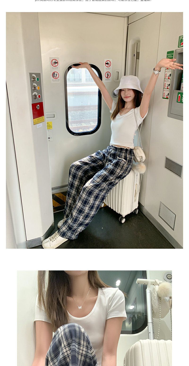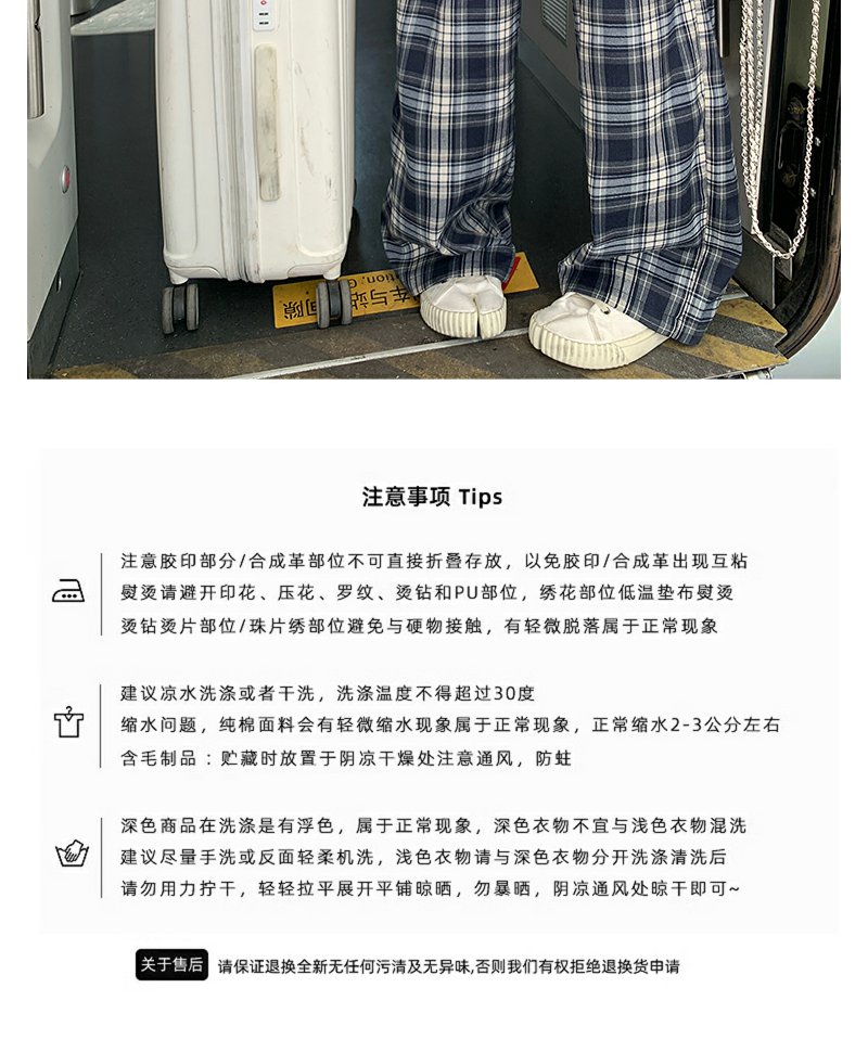 <曾小咸推荐>高腰显瘦抽绳蓝色格子宽松阔腿裤
