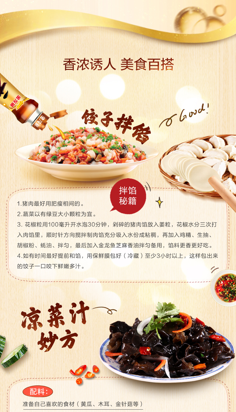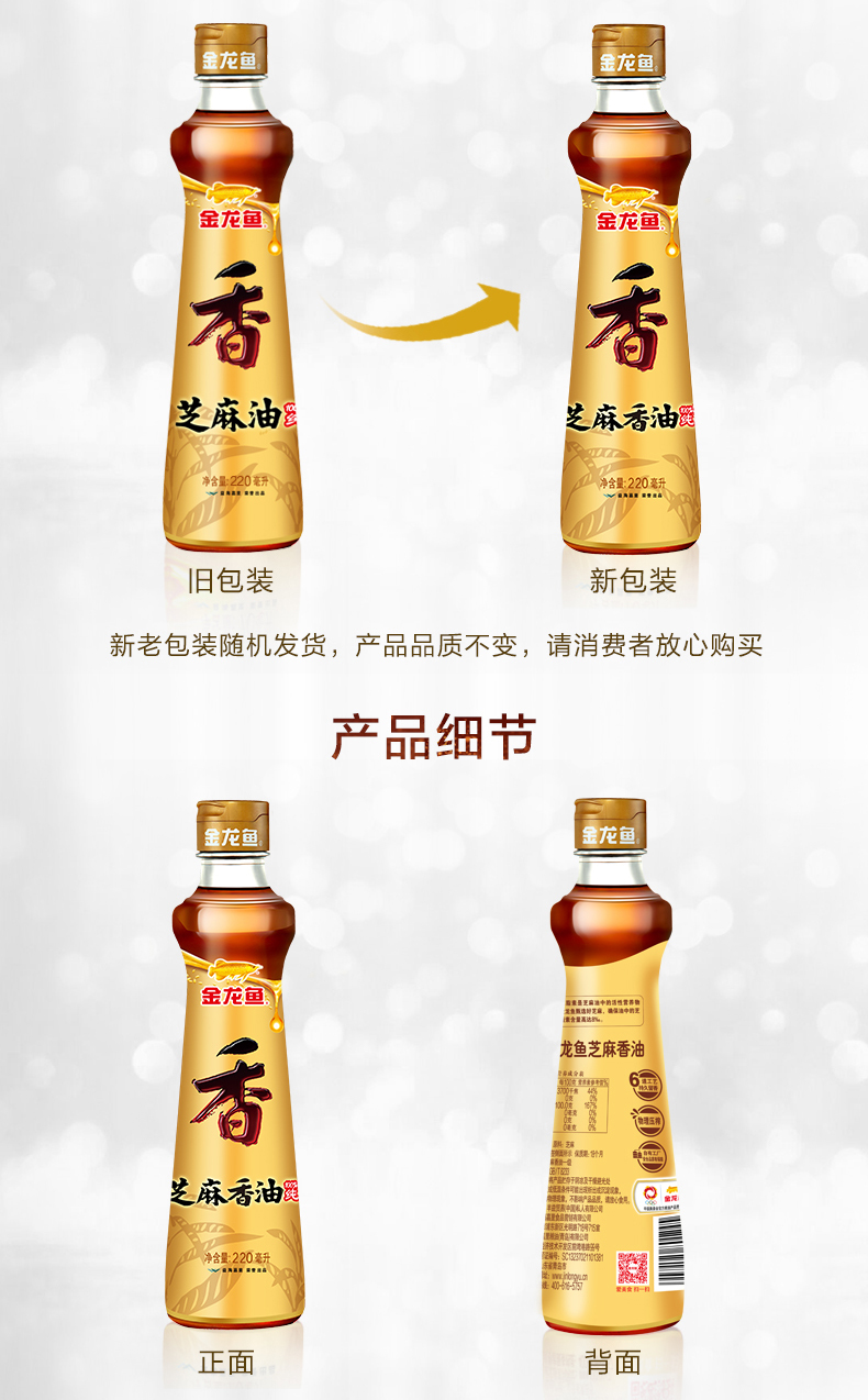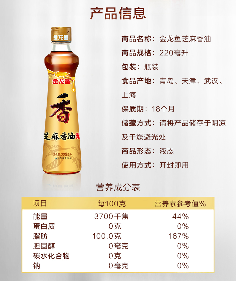 【自营】【送花椒油70ml*3】金龙鱼芝麻油220ml