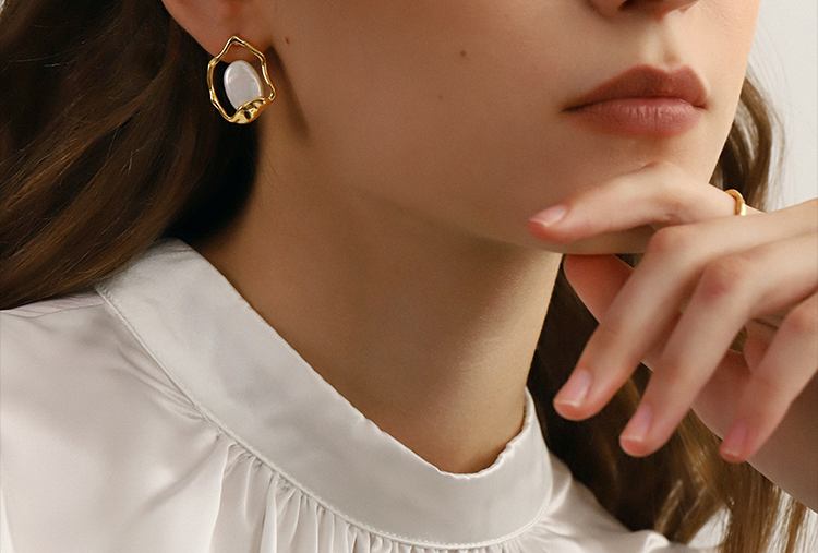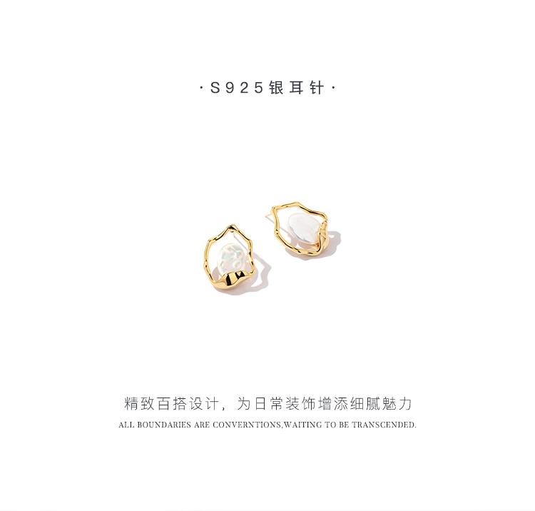 Oflye潮流饰品 巴洛克珍珠耳环新款潮气质法式复古耳钉女ins风不规则耳饰