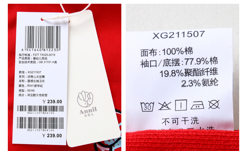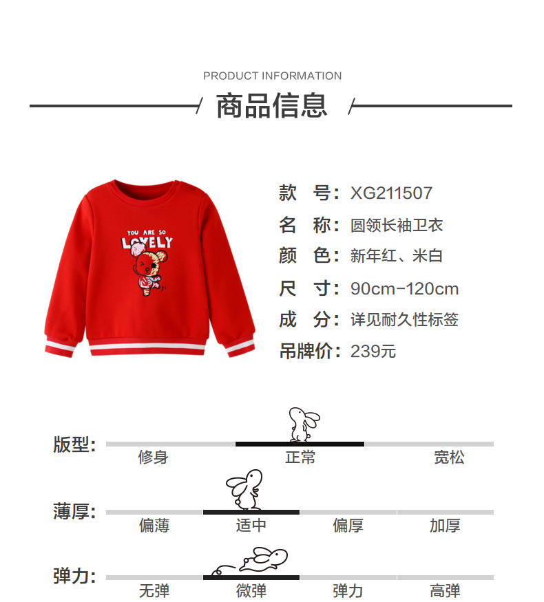安奈儿【QEE系列IP联名】女童圆领长袖卫衣xg211507