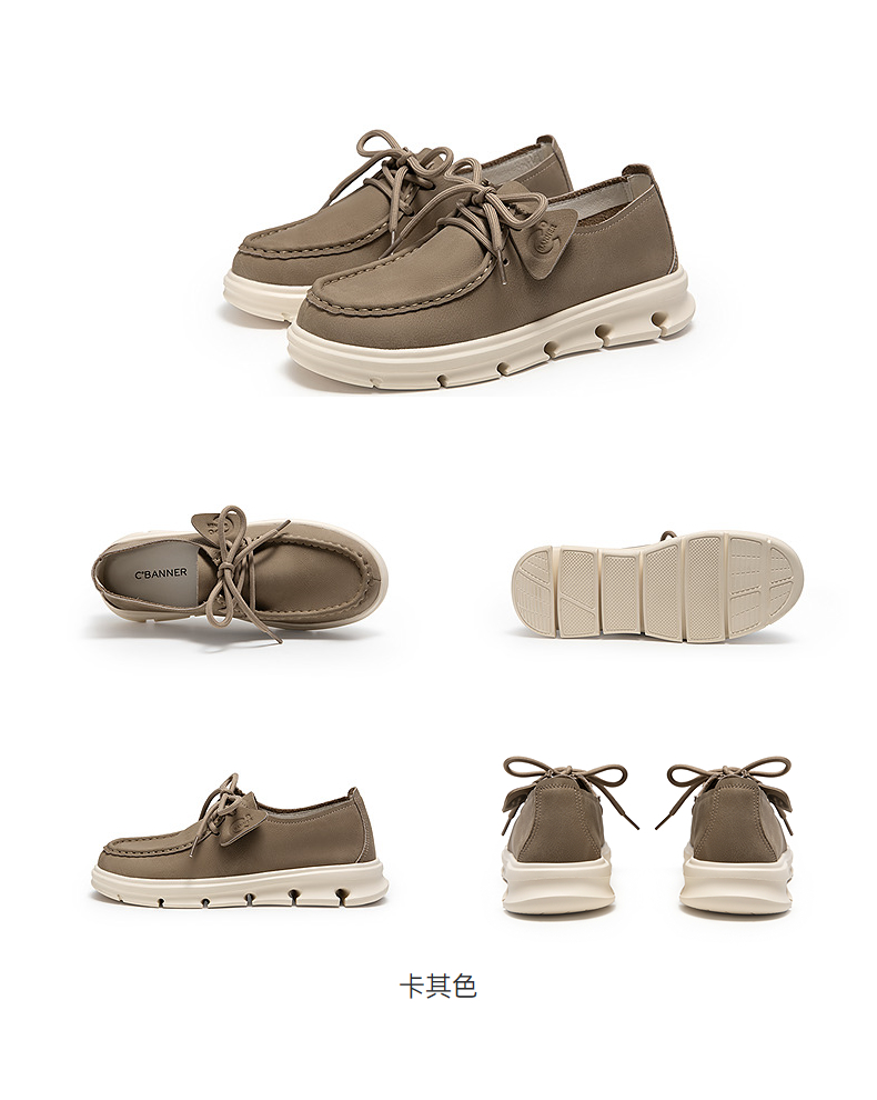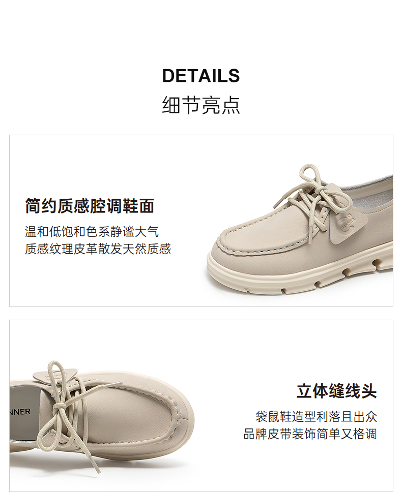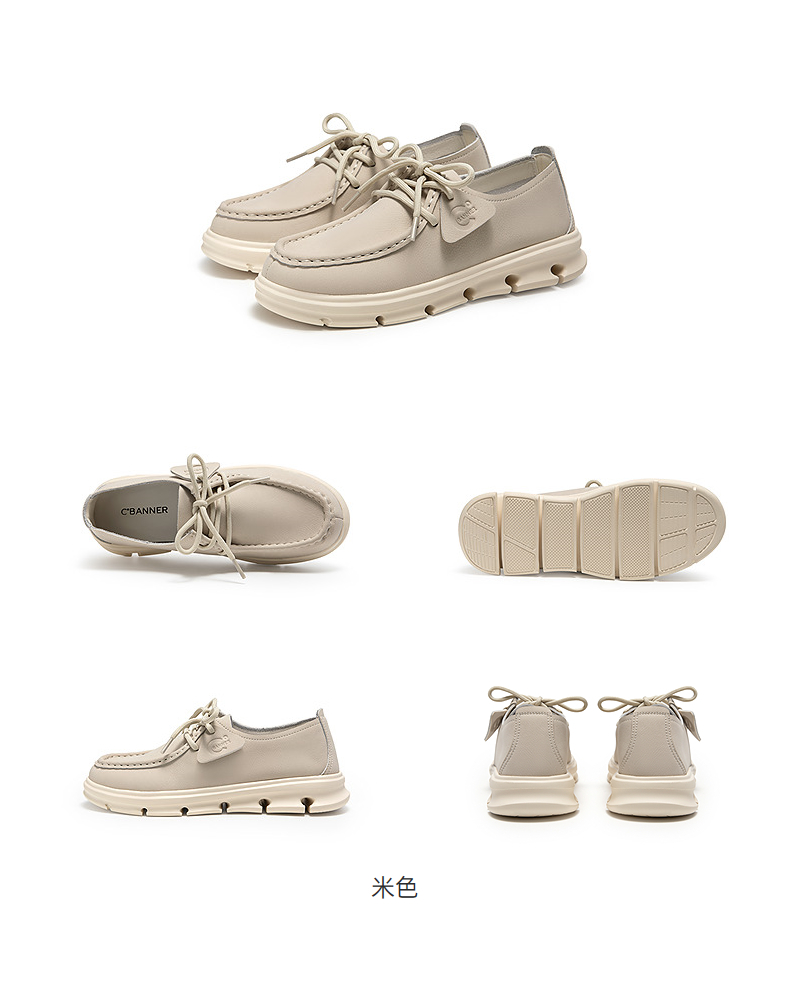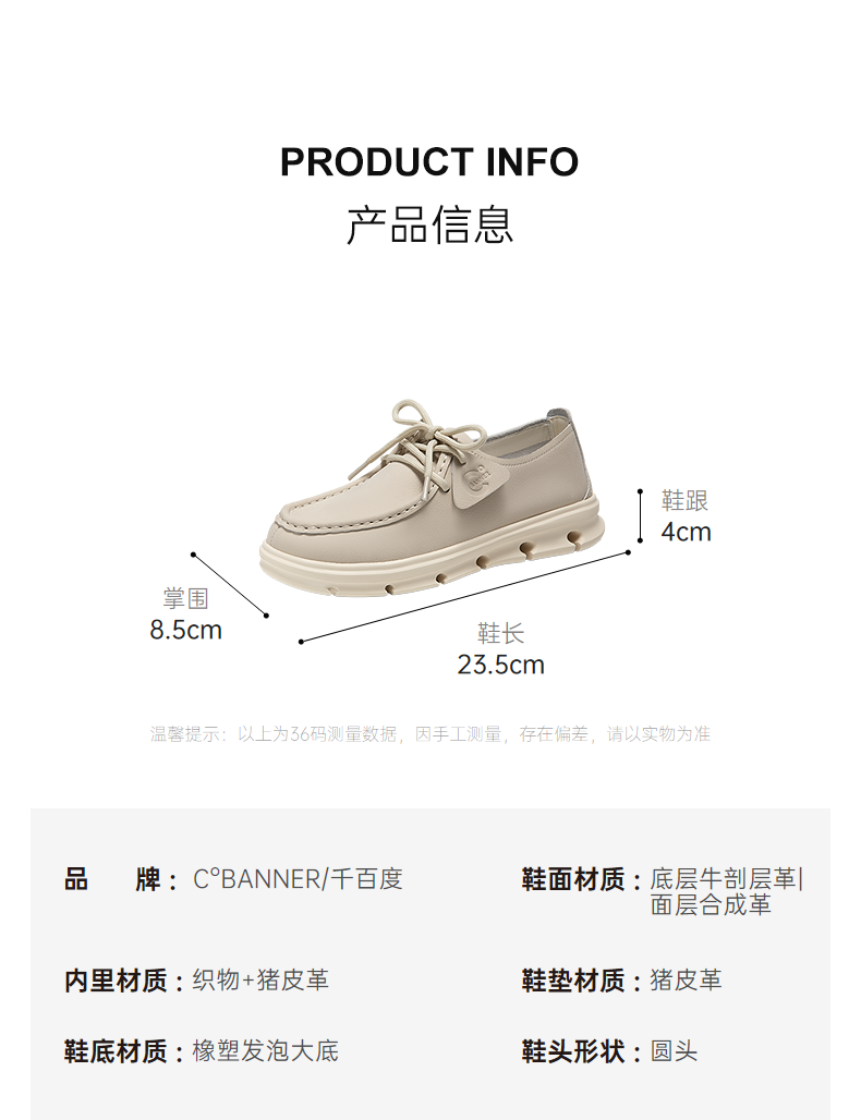 千百度厚底袋鼠鞋女款增高牛津鞋休闲真皮深口乐福鞋A25166812