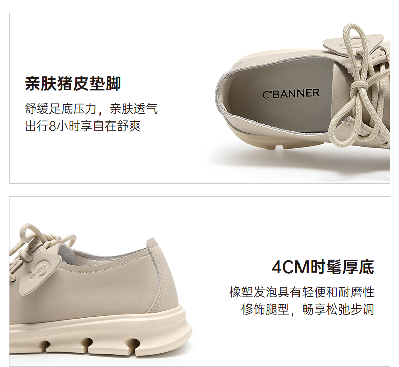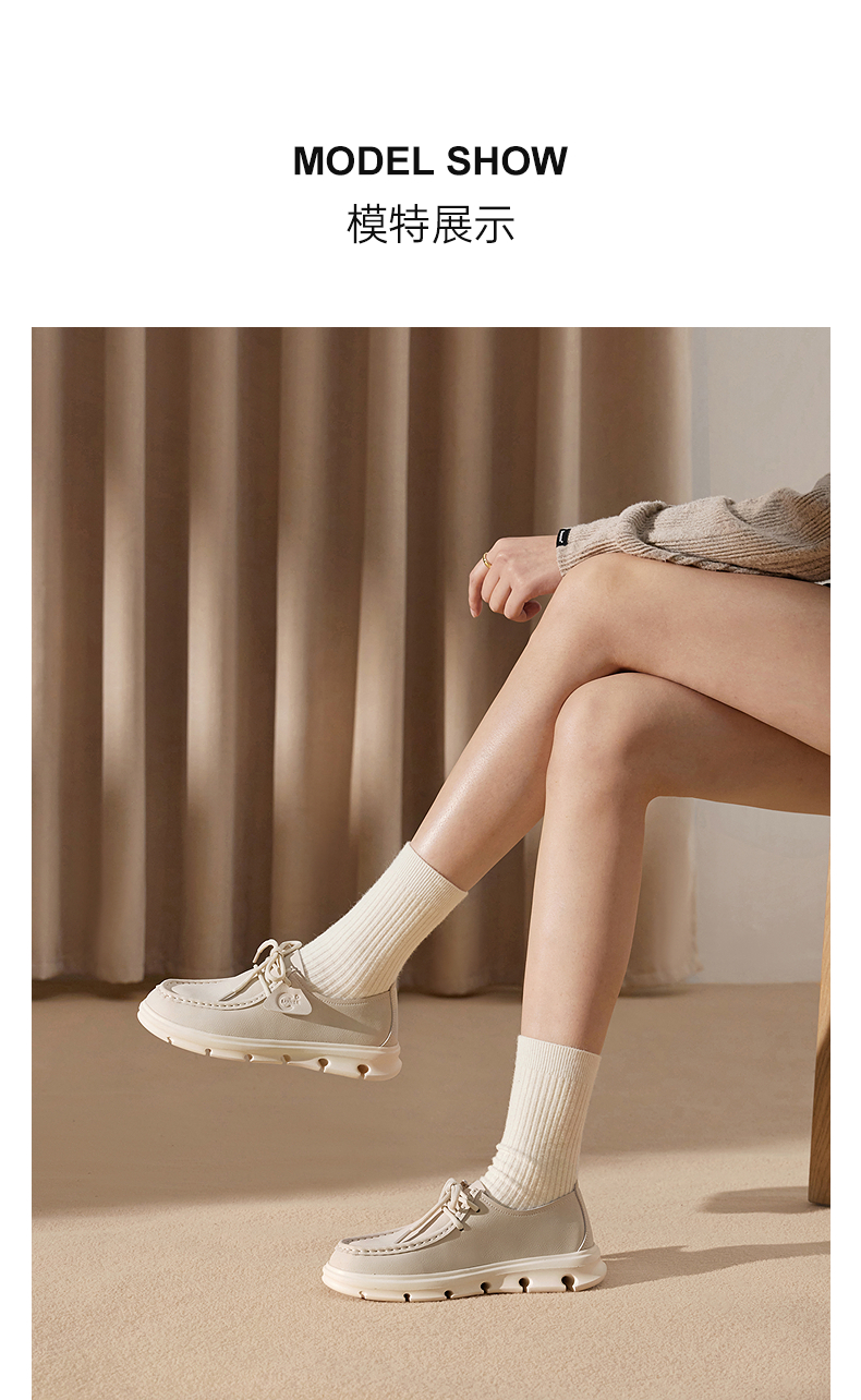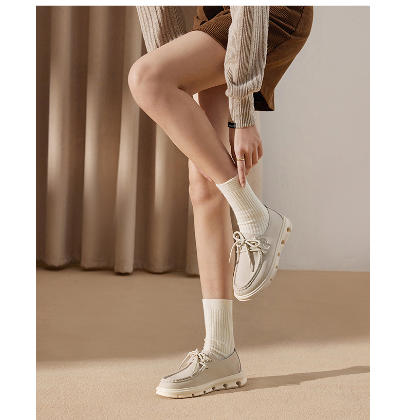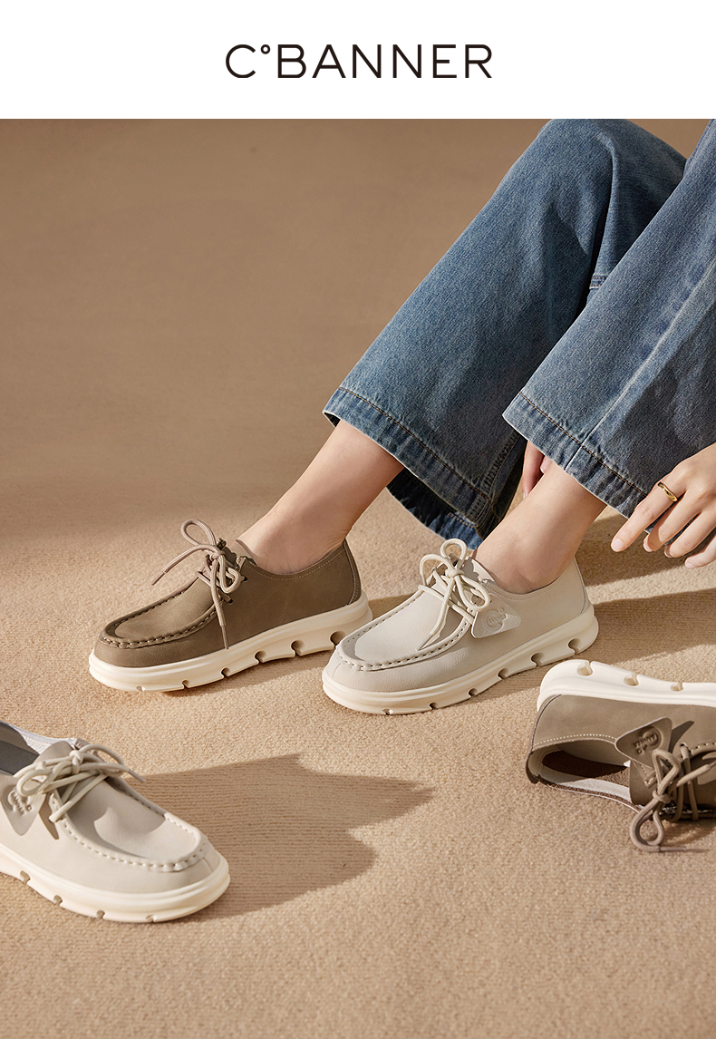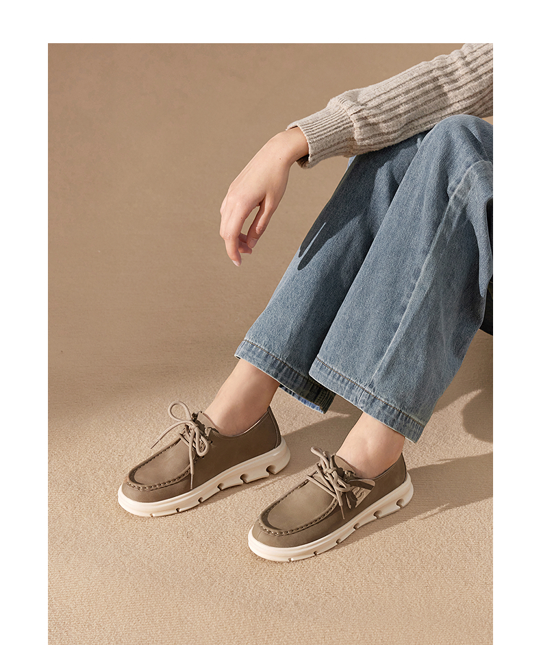 千百度厚底袋鼠鞋女款增高牛津鞋休闲真皮深口乐福鞋A25166812