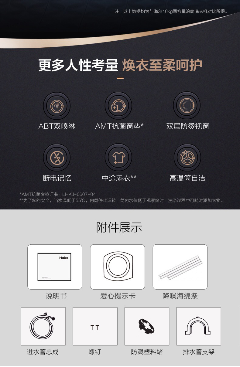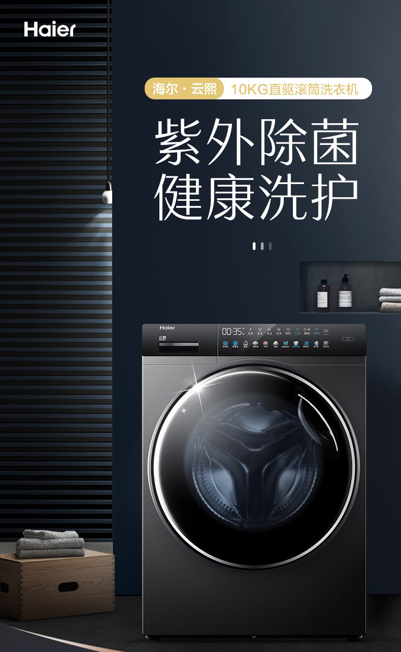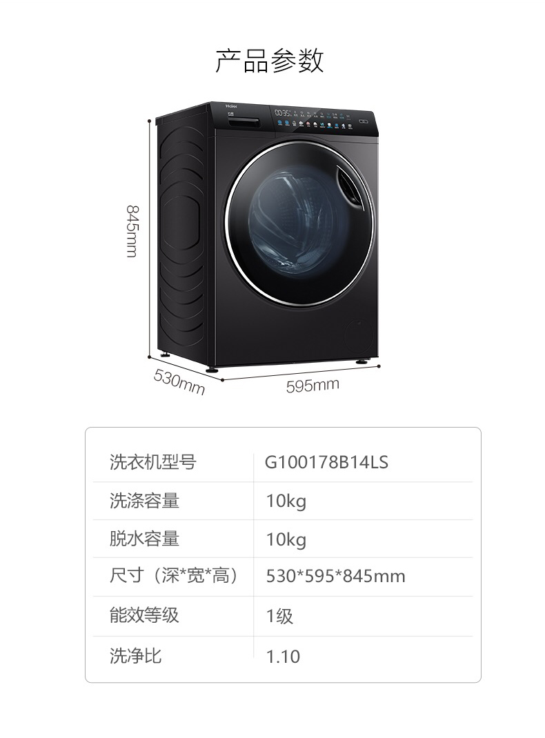 海尔洗衣机10公斤大容量全自动直驱变频滚筒洗衣机紫外线除菌超薄G100178B14LS