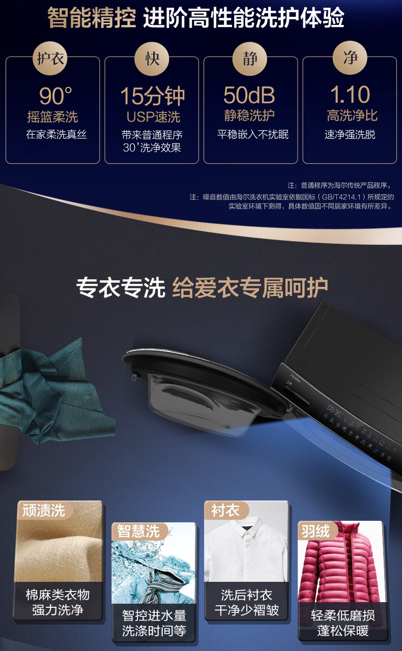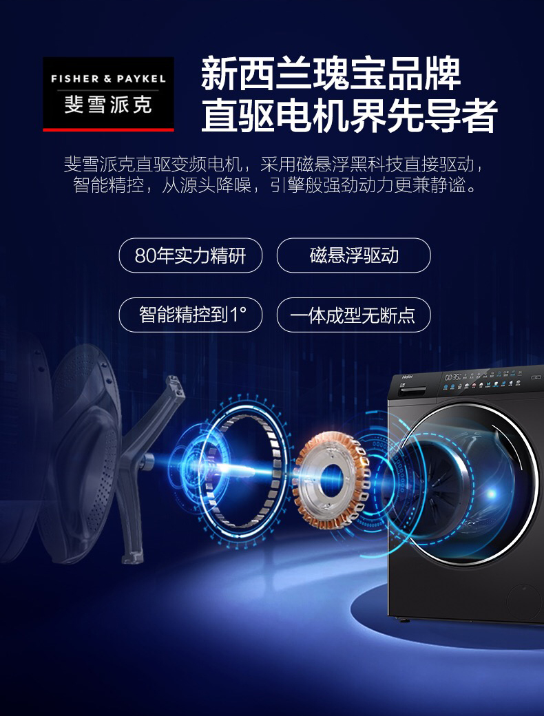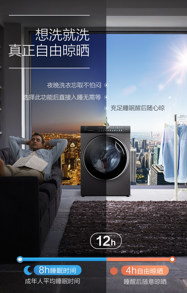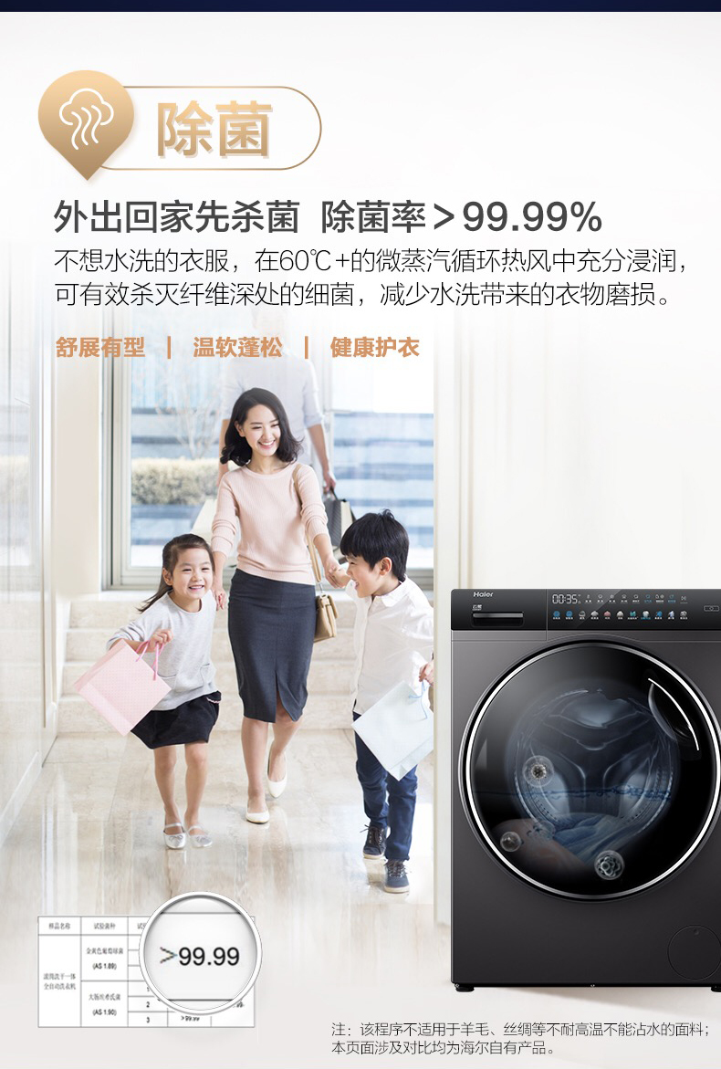 海尔洗衣机10公斤大容量全自动直驱变频滚筒洗衣机紫外线除菌超薄G100178B14LS