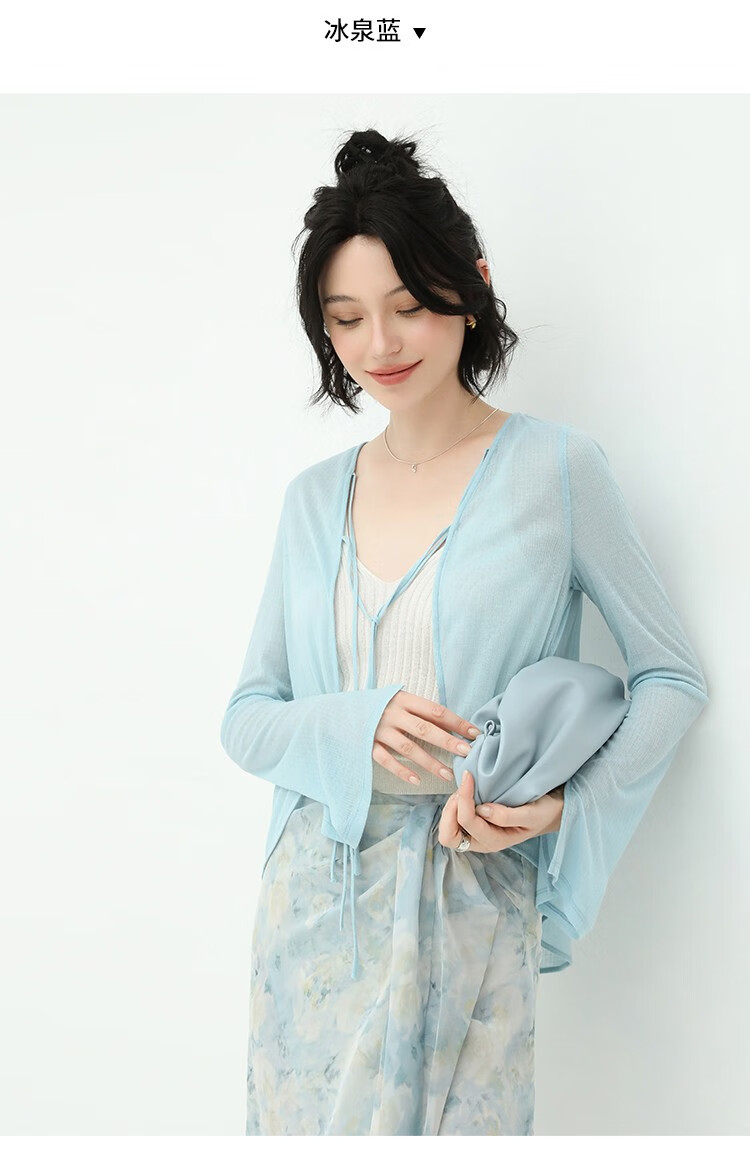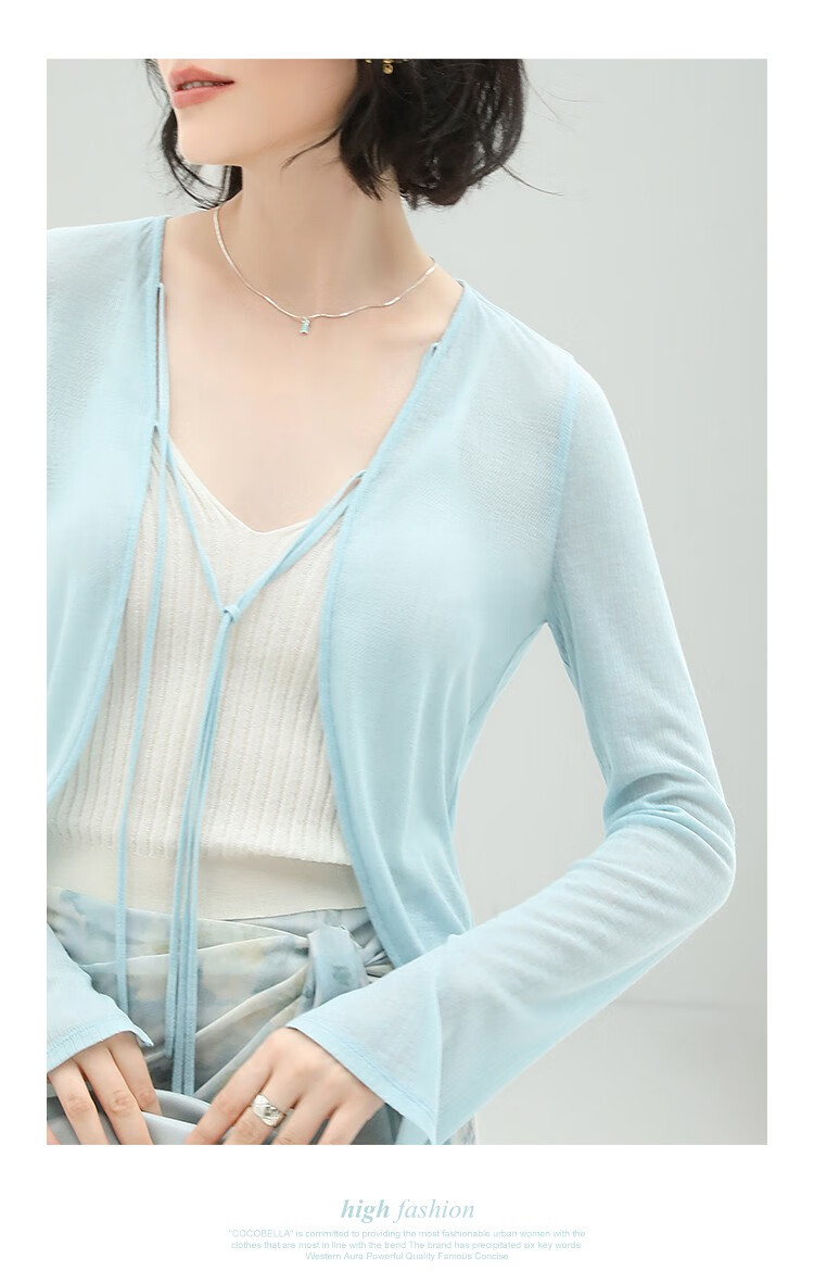 【限时秒杀】COCOBELLA轻盈设计感多色遮阳小开衫女轻薄针织空调衫MZ173C