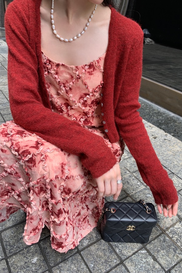 SIA SAYLOR 红色立体花边吊带连衣裙 19075