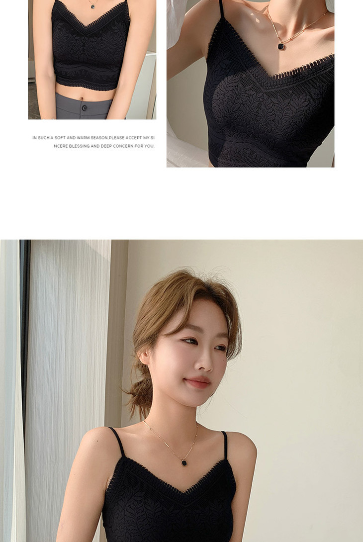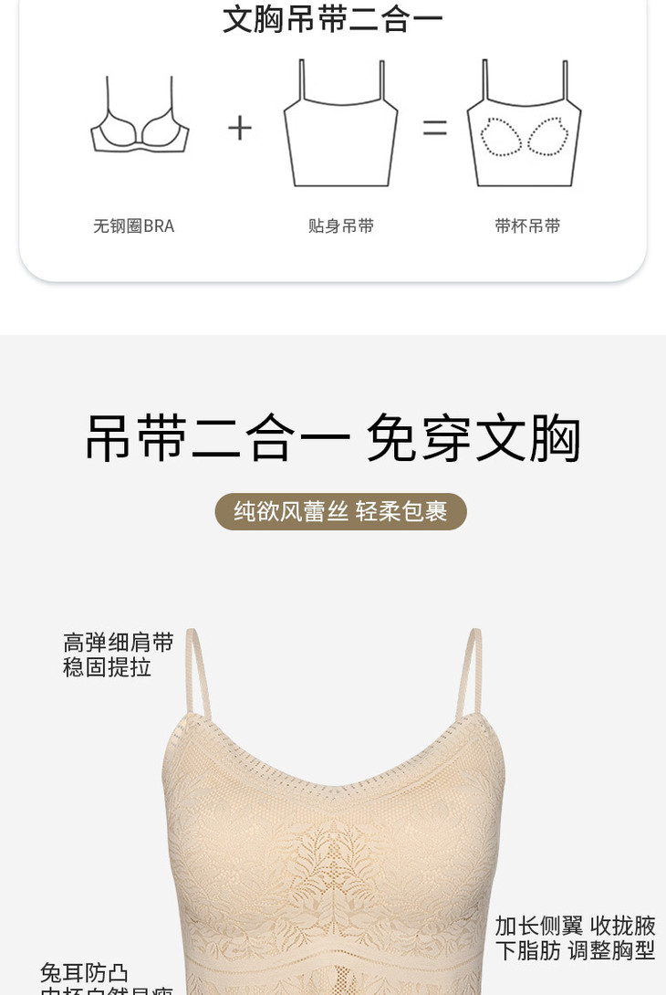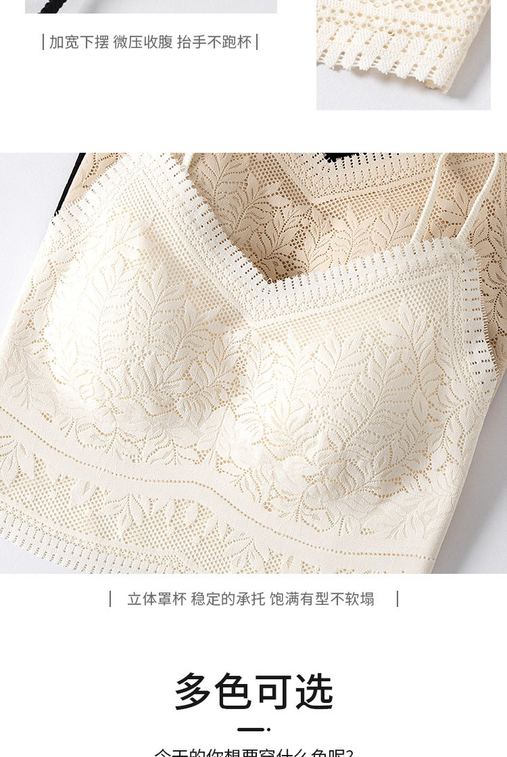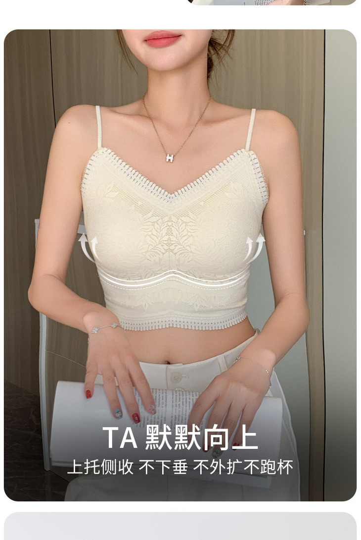 花边美背心内搭蕾丝小吊带裹胸无痕内衣固定杯防走光文胸