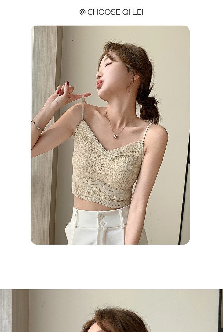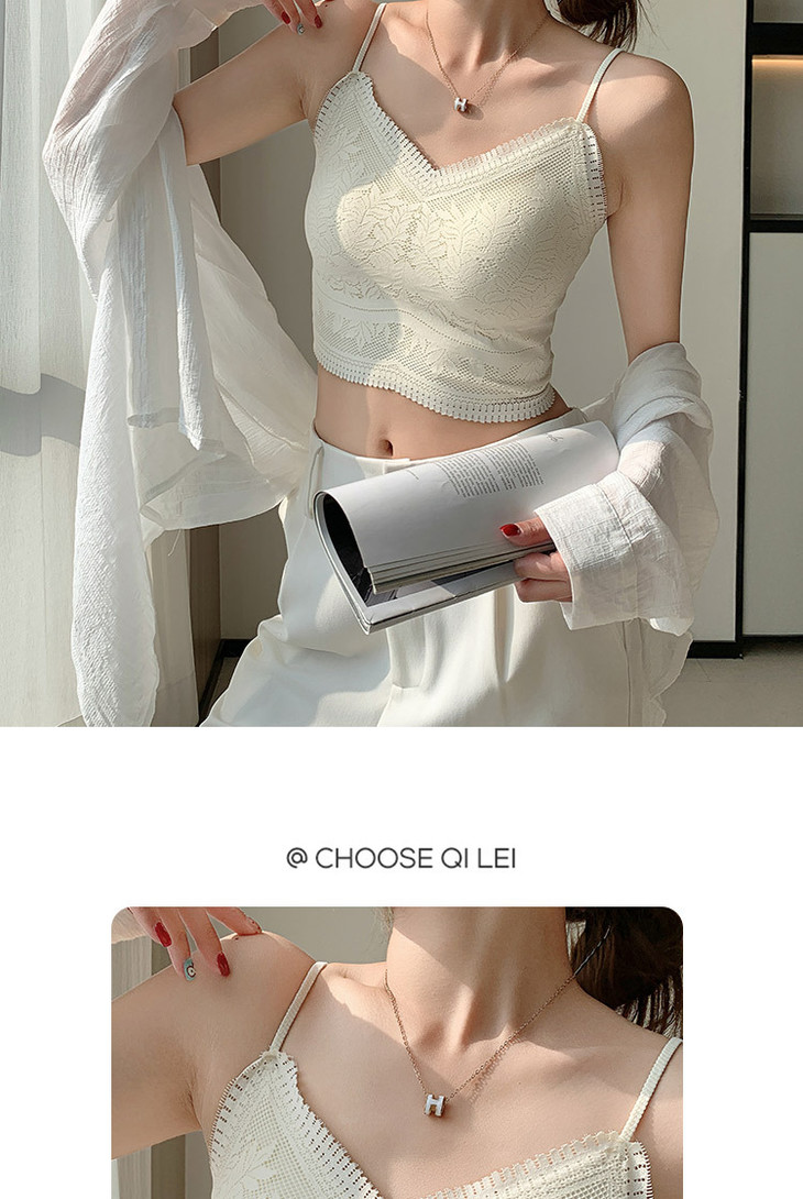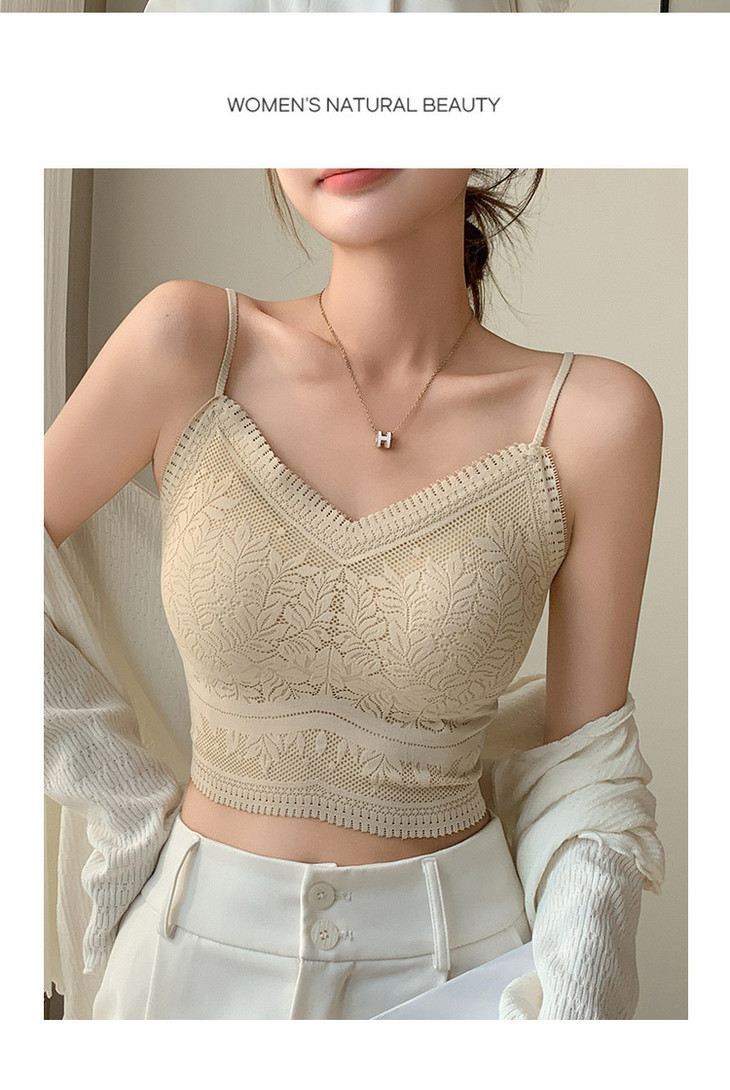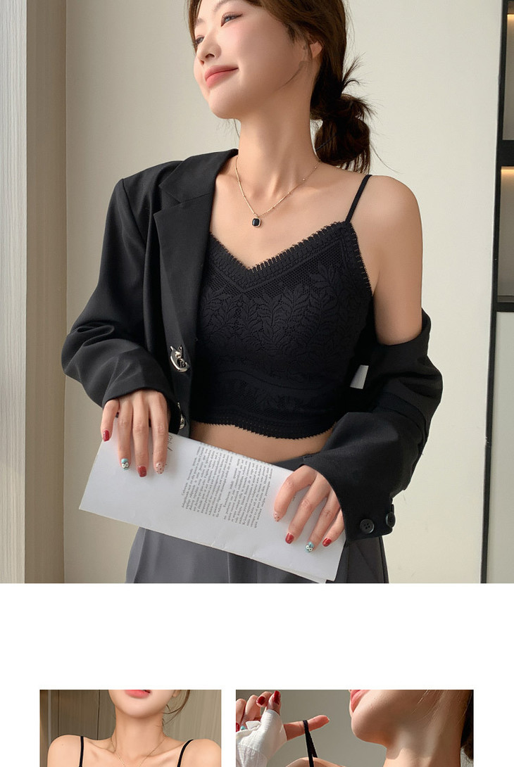 花边美背心内搭蕾丝小吊带裹胸无痕内衣固定杯防走光文胸