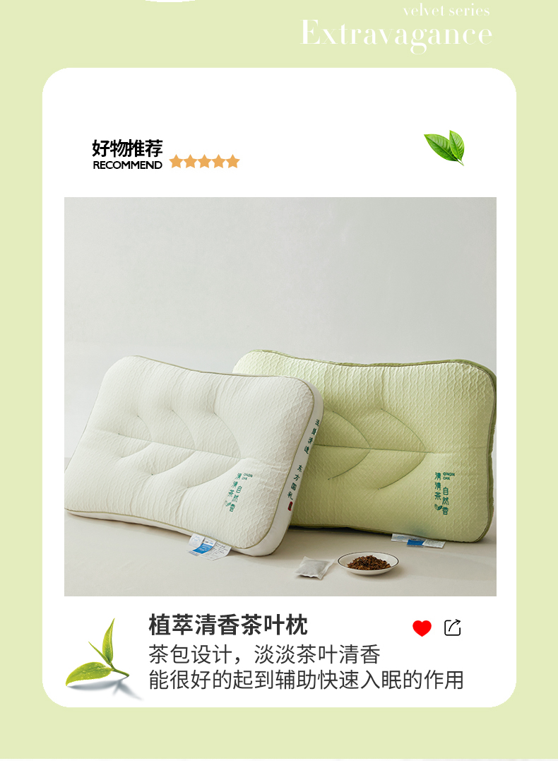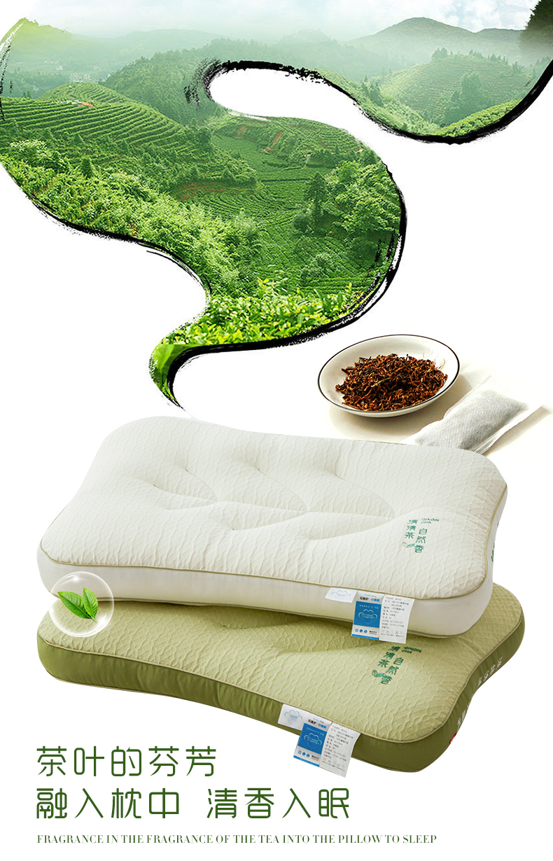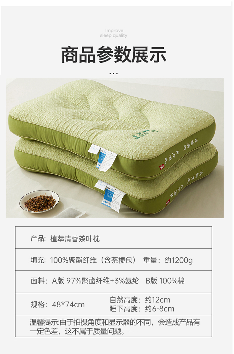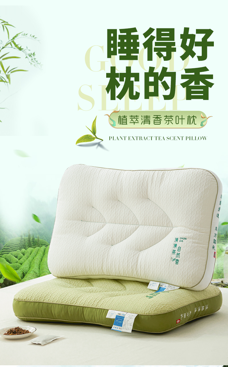 自然醒植萃清香茶叶枕头枕芯护颈椎助睡眠成人草本可拆卸茶学生宿舍单人整头XK