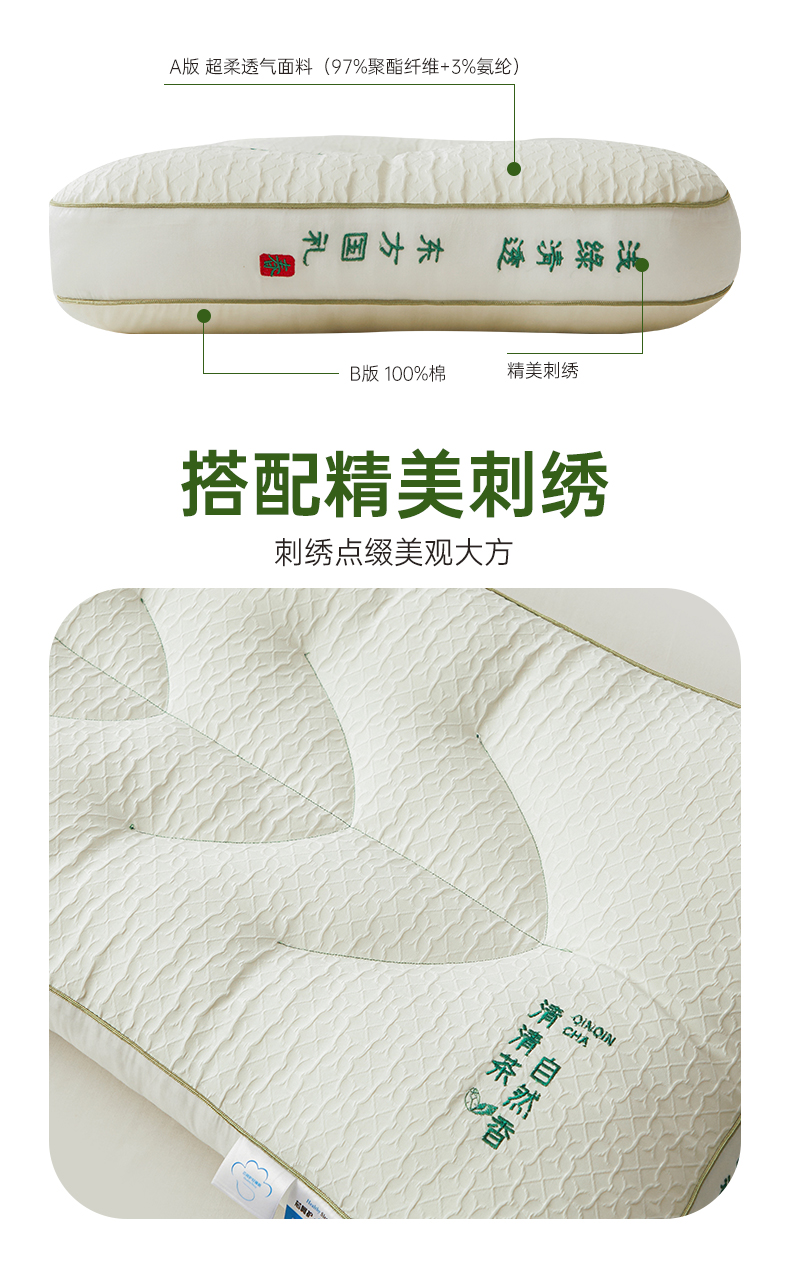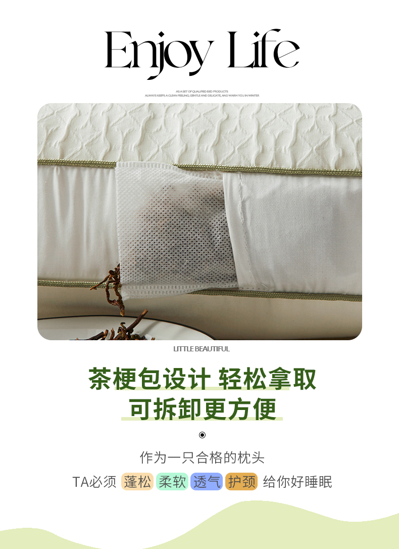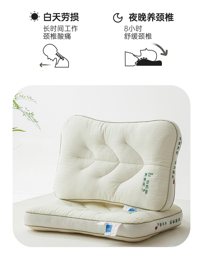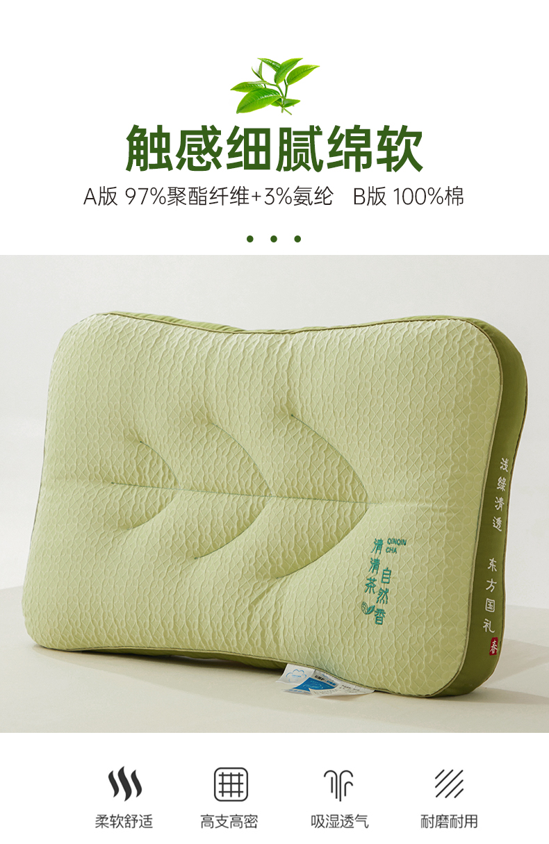 自然醒植萃清香茶叶枕头枕芯护颈椎助睡眠成人草本可拆卸茶学生宿舍单人整头XK