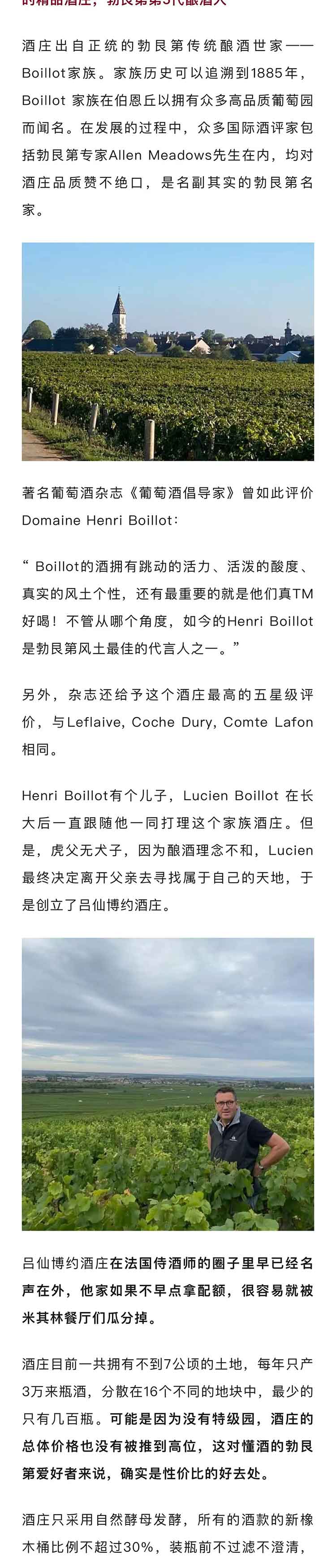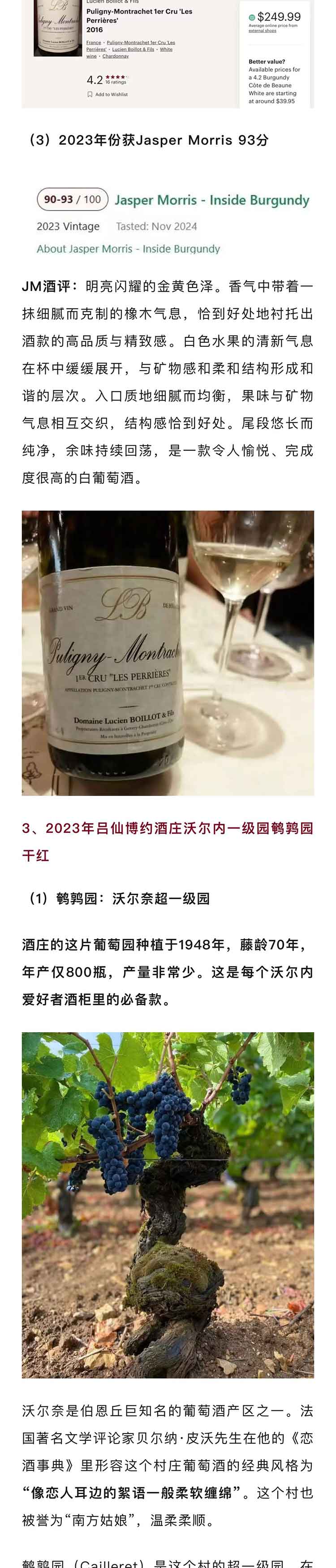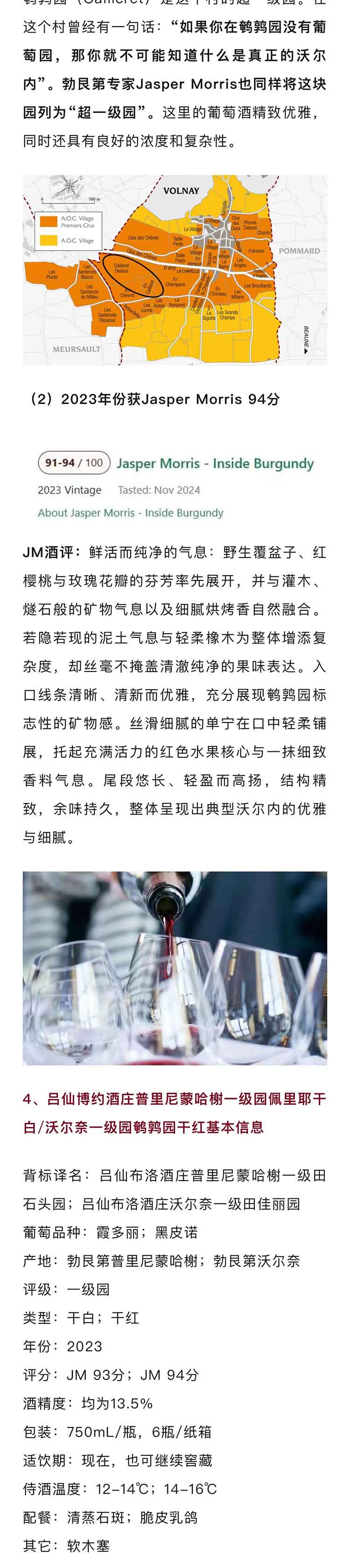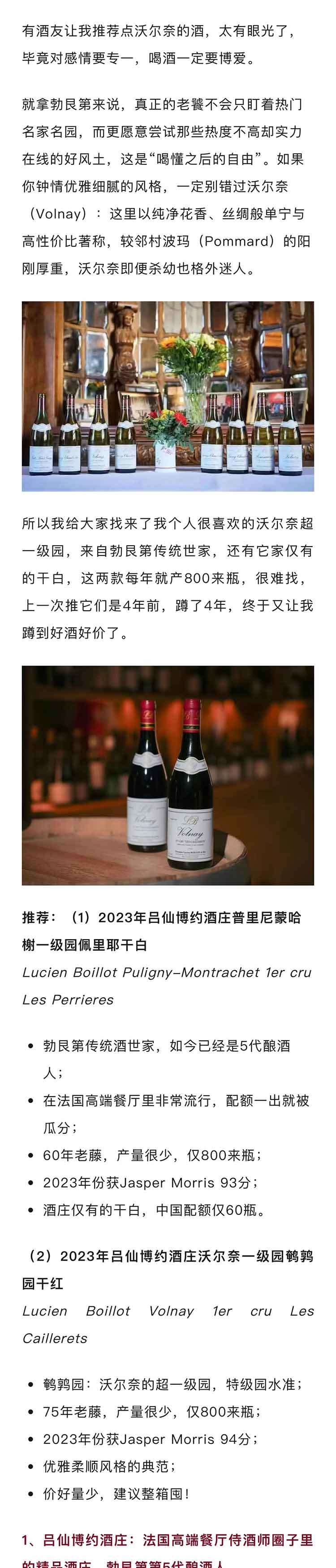 法国勃艮第2023年吕仙博约酒庄沃尔奈一级园鹌鹑园黑皮诺干红