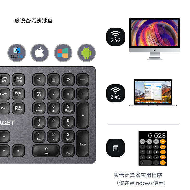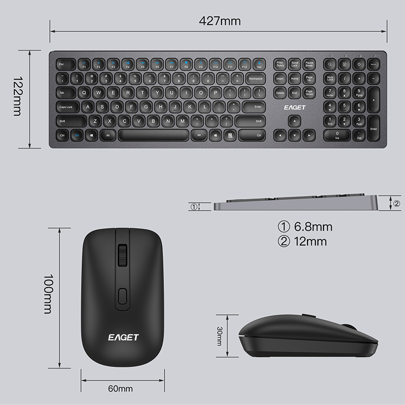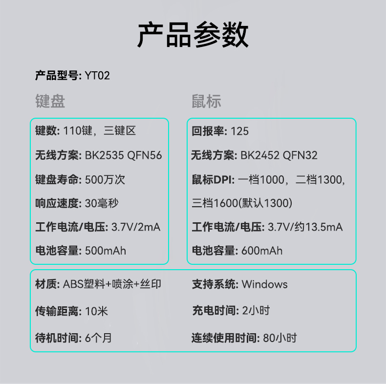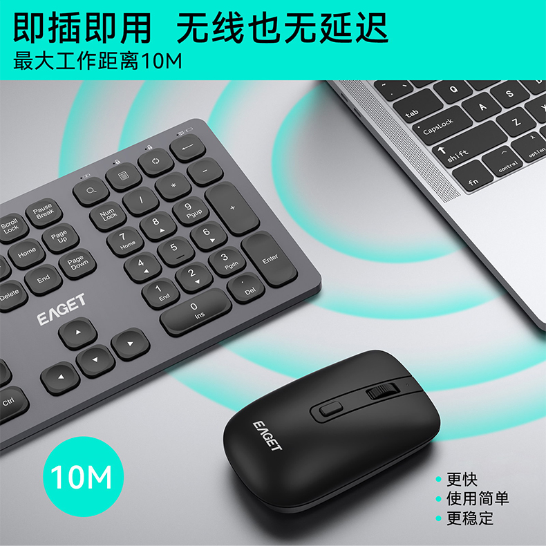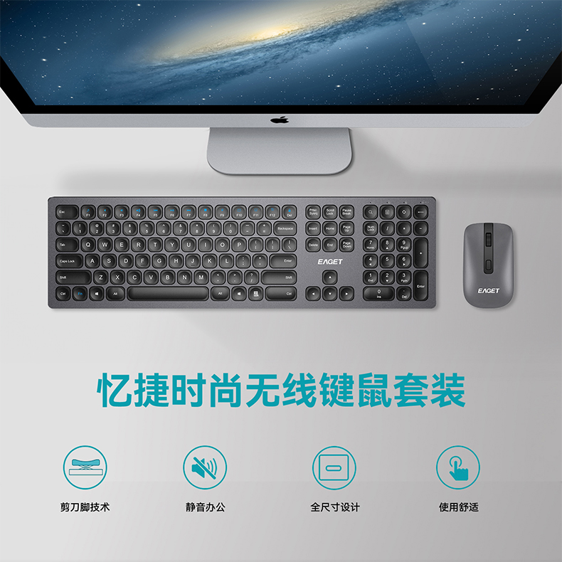 忆捷TYPE-C充电无线键盘鼠标套装静音剪刀脚薄膜轻薄简约无线键鼠套装YT02