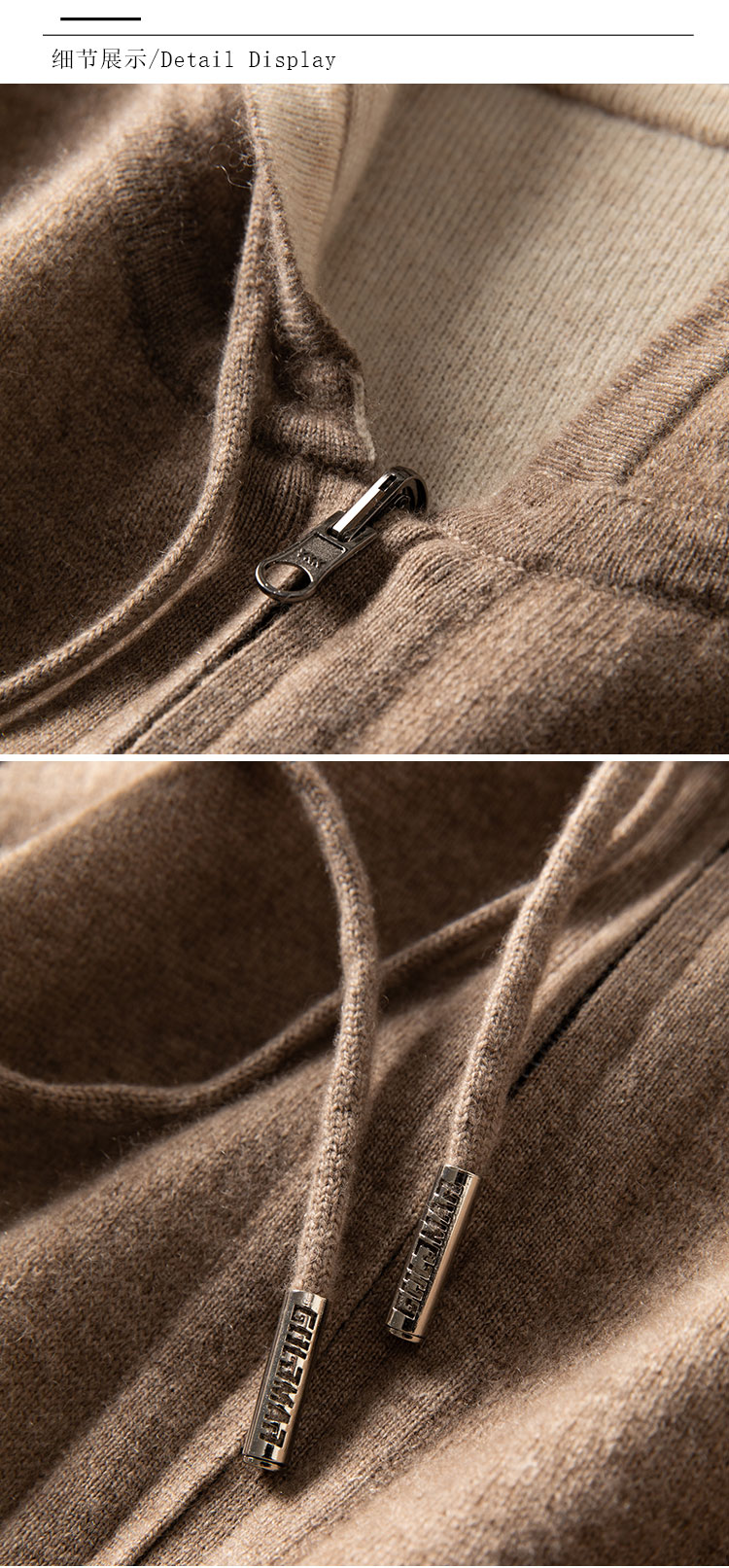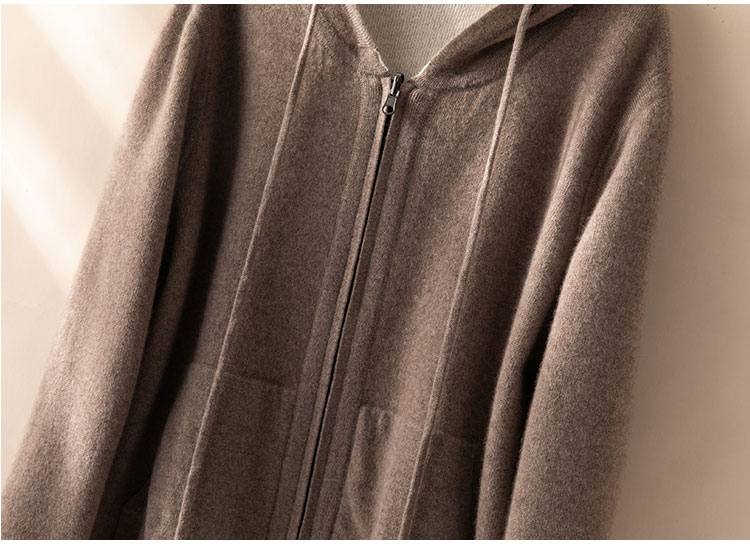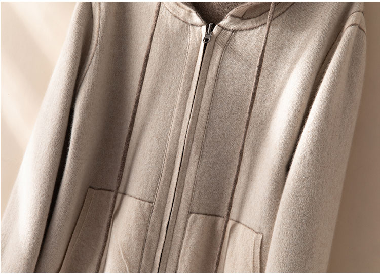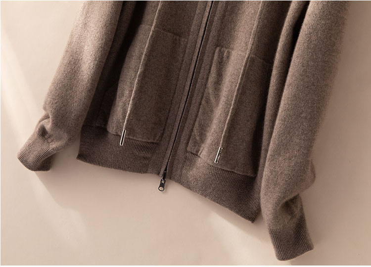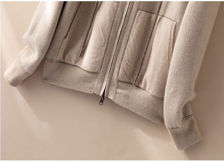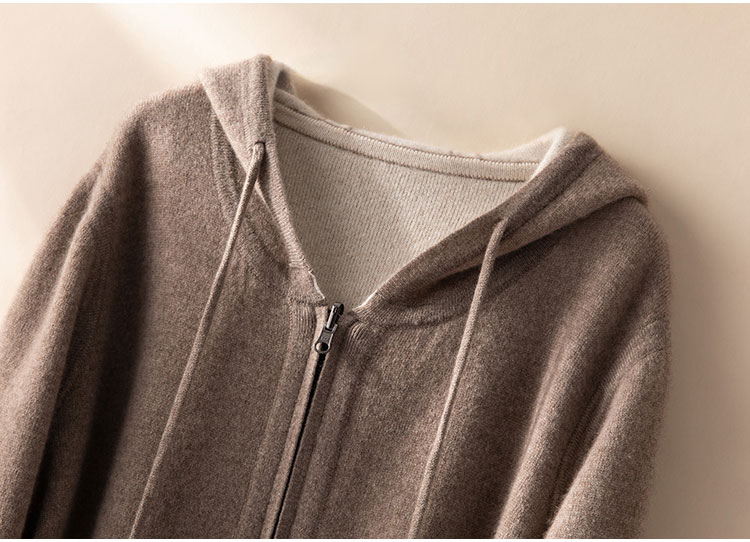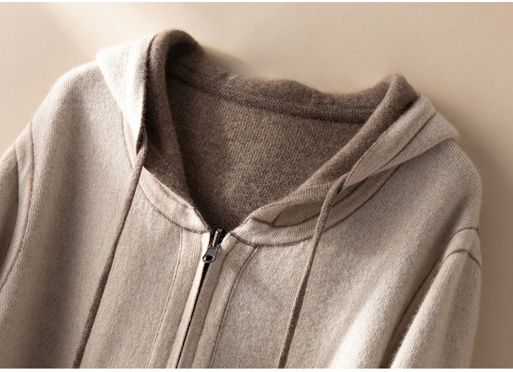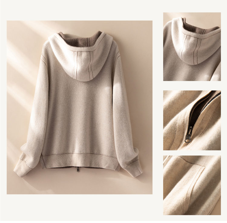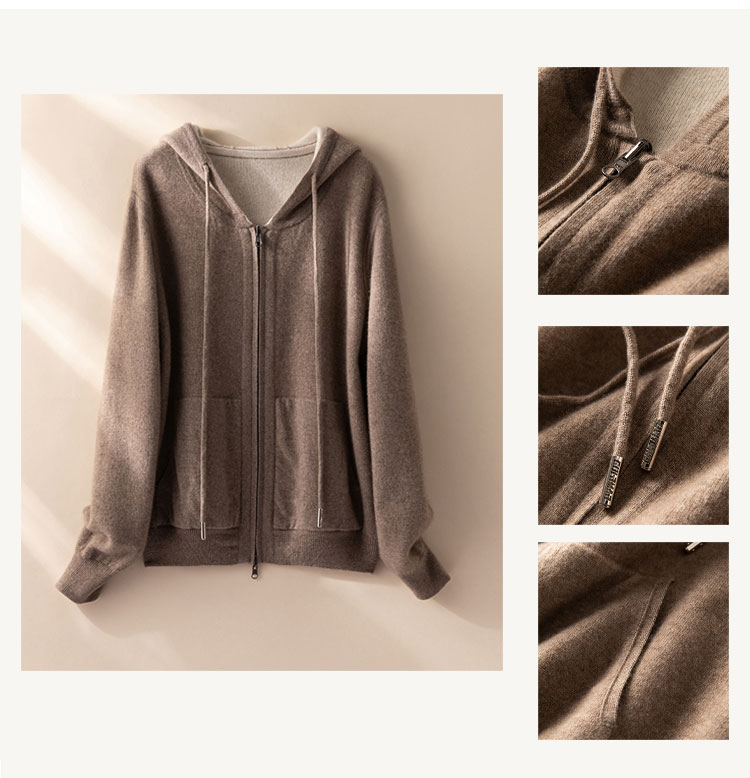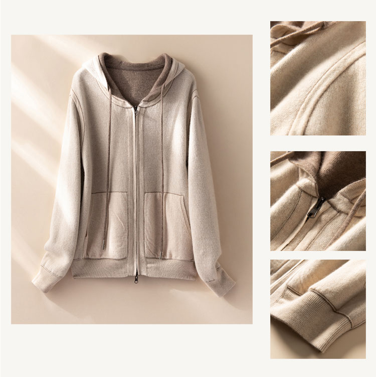 双面可穿~100%山羊绒连帽运动休闲针织开衫女羊绒外套CYR250353
