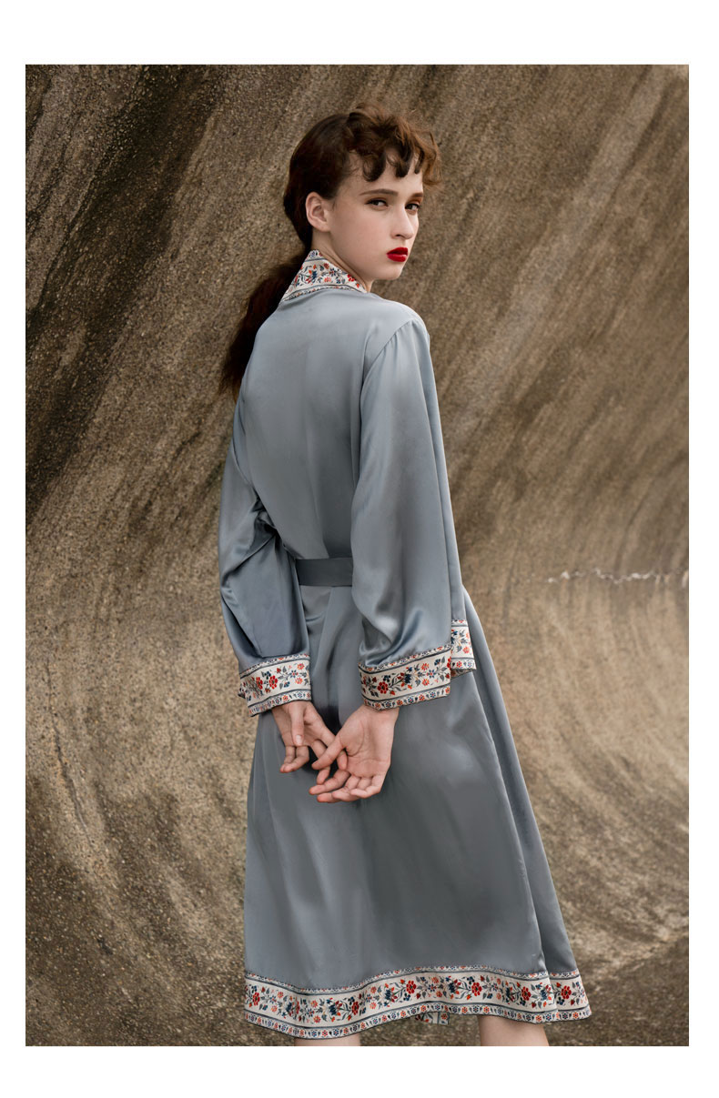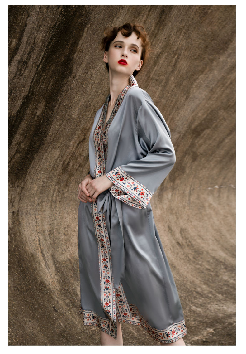 Solo seta重磅真丝睡袍女晨袍桑蚕丝浴袍丝绸中国风2025秋冬