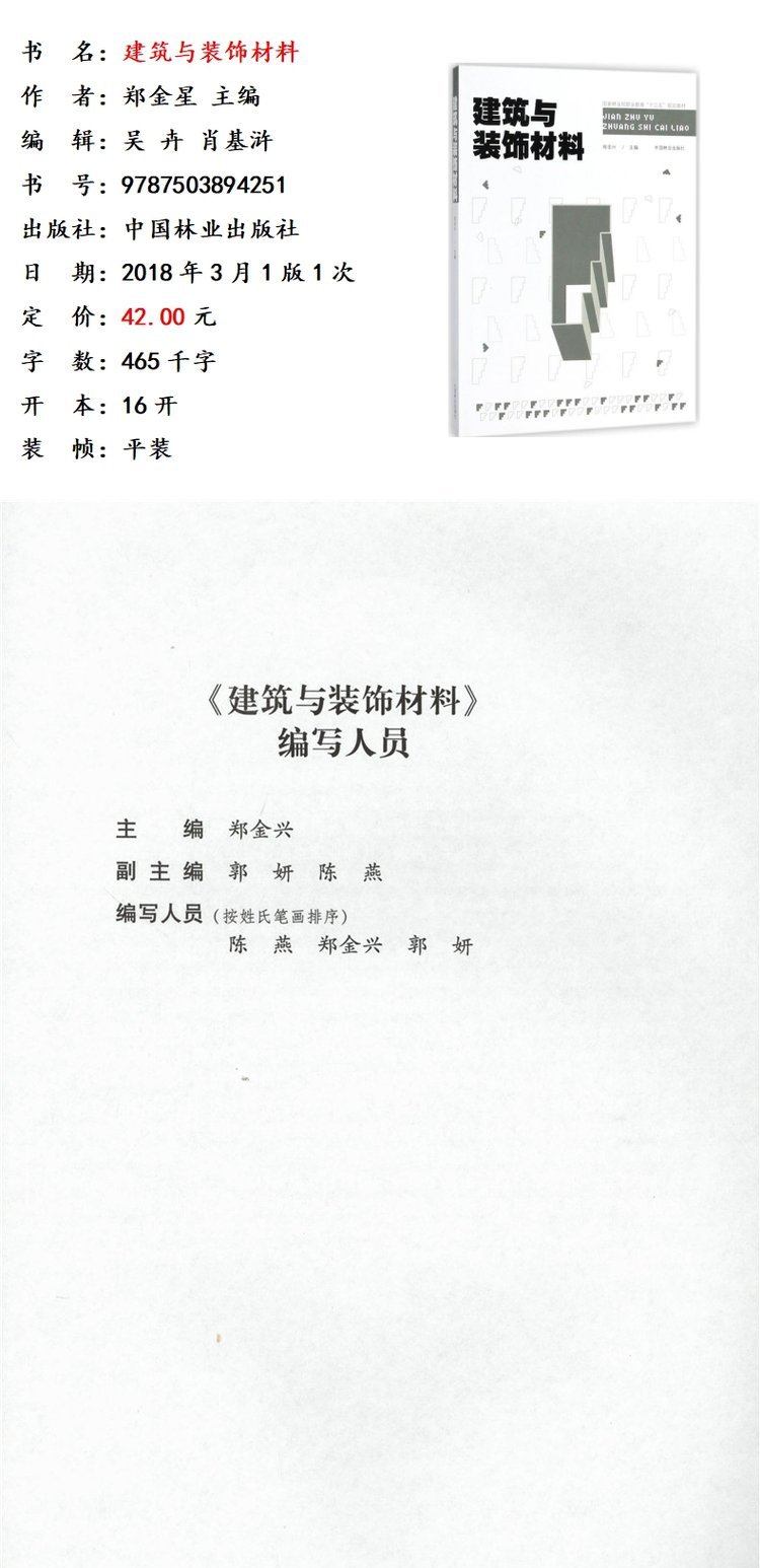 建筑与装饰材料 郑金星 9425 国家林业局教育十三五规划教材 中国林业出版社 畅销书