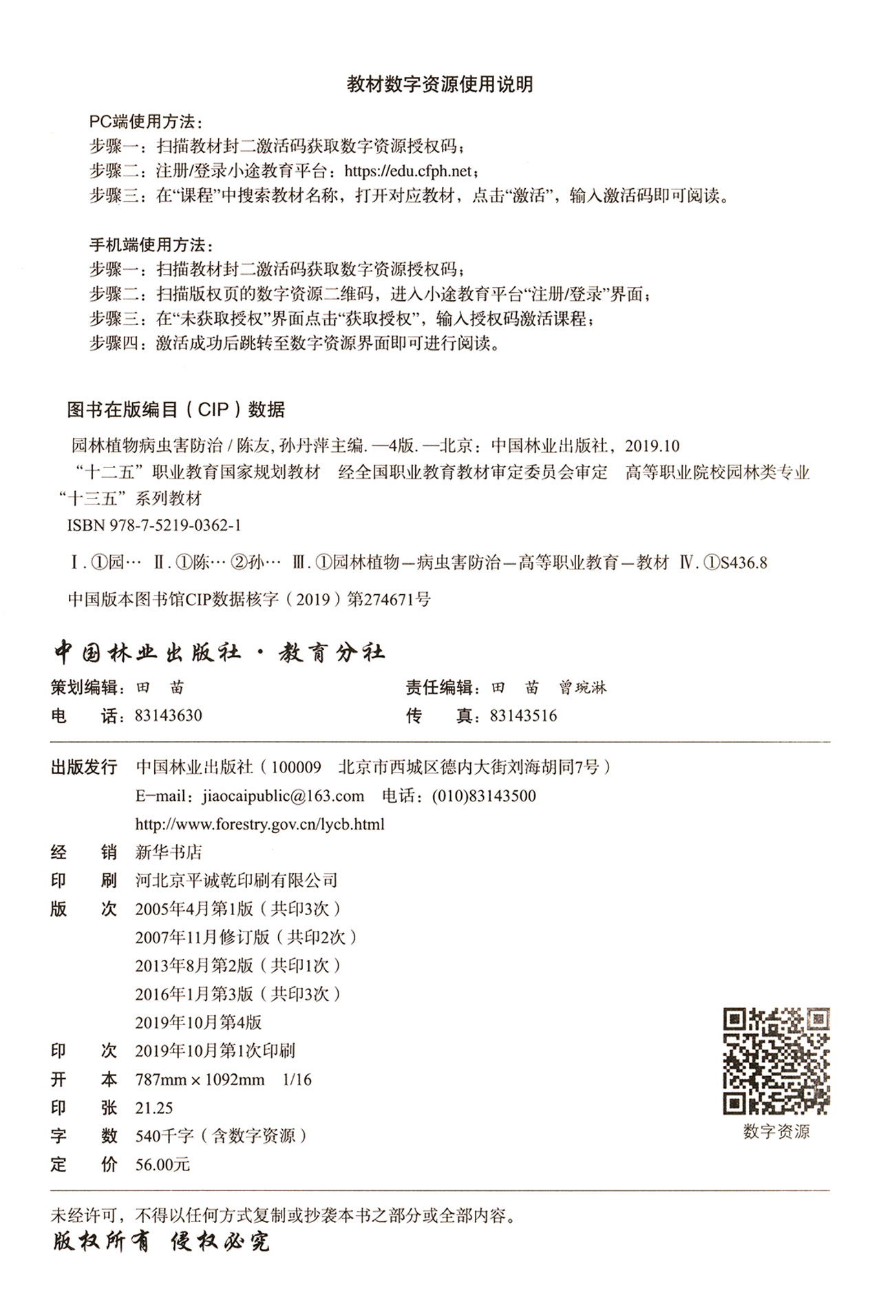 园林植物病虫害防治 第4版 陈友//孙丹萍 高等职业院校园林类专业十三五系列教材 0362 中国林业出版社