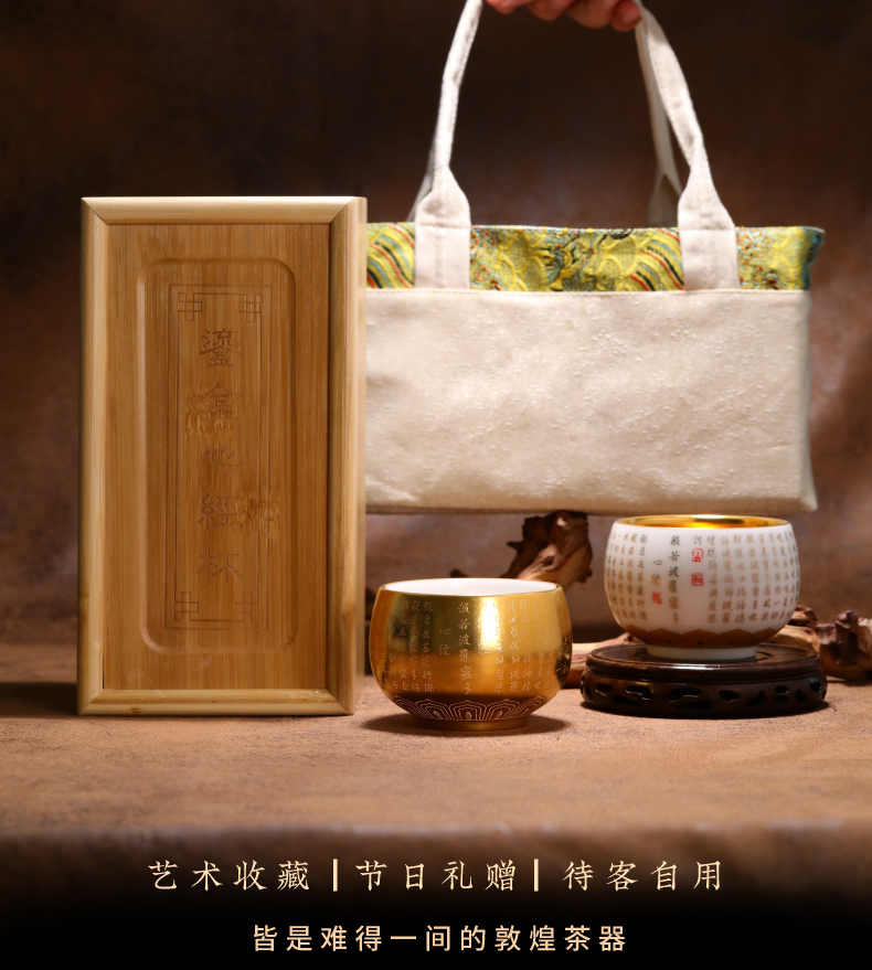 敦煌研究院【 敦煌鎏金心经茶杯套装】 文创茶具礼盒对杯送长辈领导