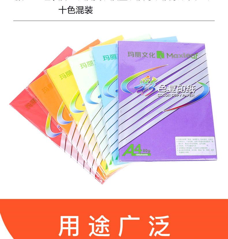 【仅供集采】玛丽(maxleaf)粉色A4-80克彩色复印纸 100张/包 25包/箱