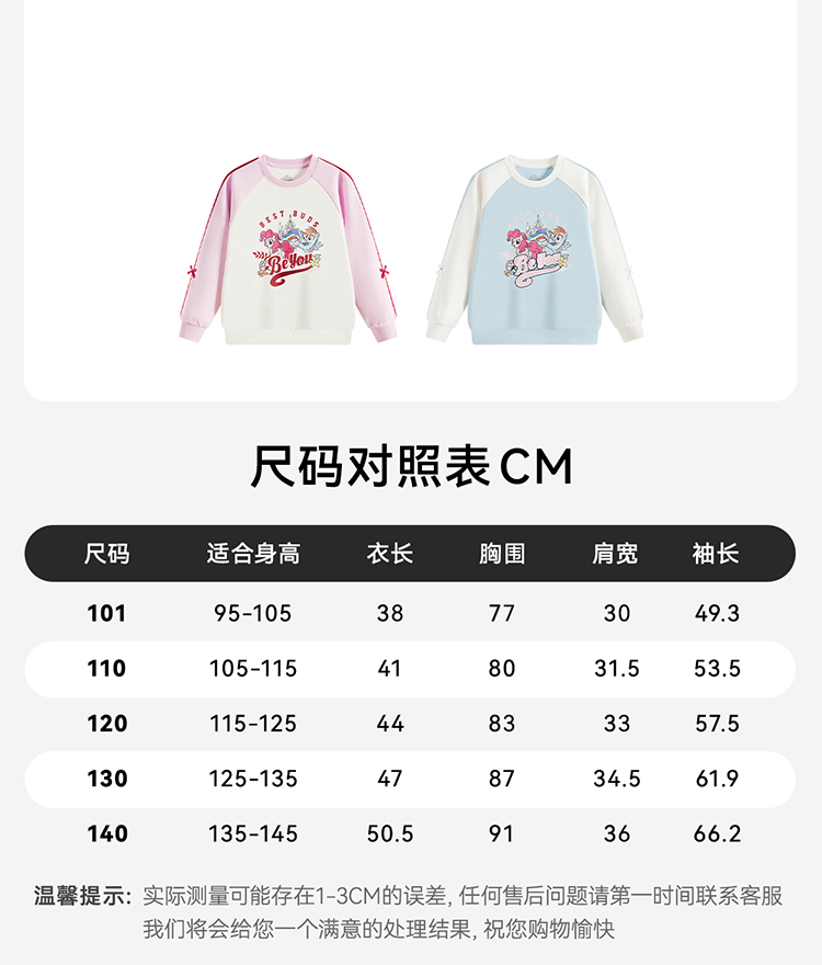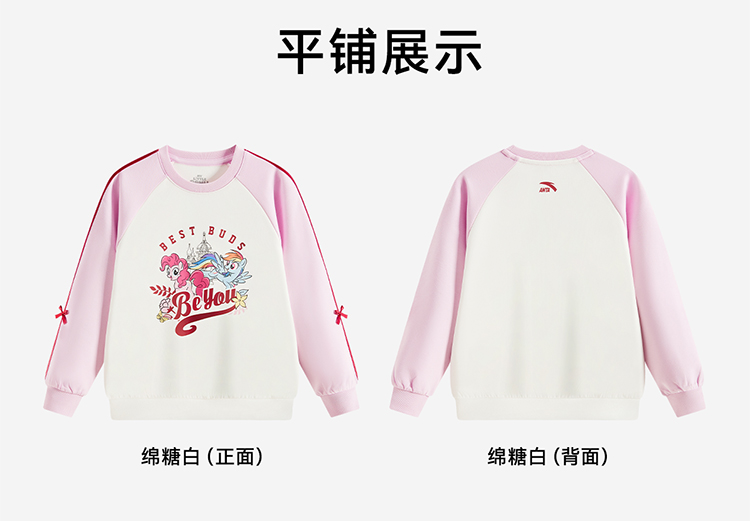 小马宝莉IP安踏儿童卫衣女小童套头衫2025秋季新款女孩长袖上衣362539606