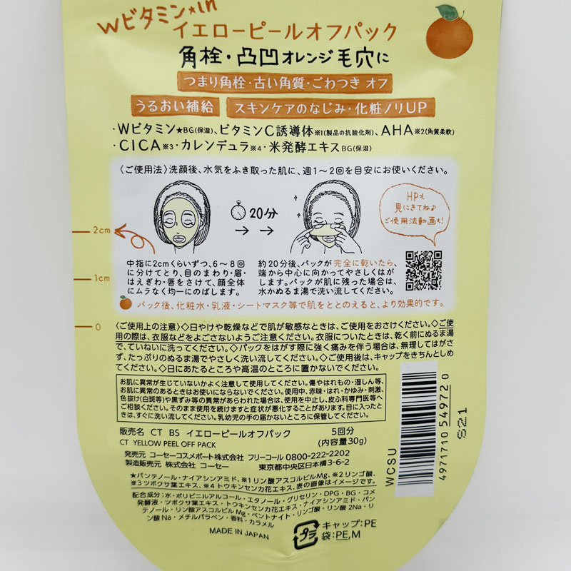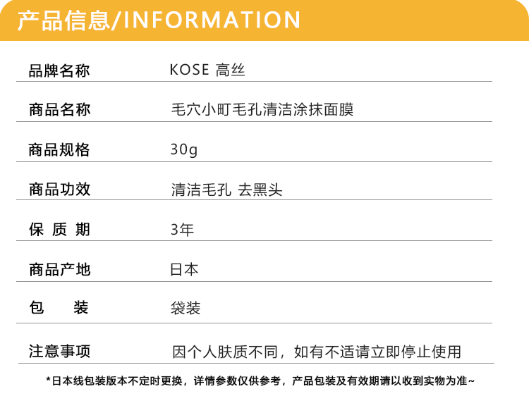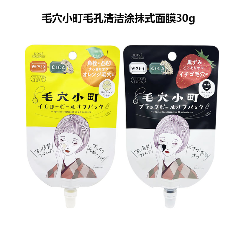 【保税仓】Kose/高丝小町黑色去黑头涂抹面膜草莓味33g/黄色清洁毛孔涂抹面膜清香味30g