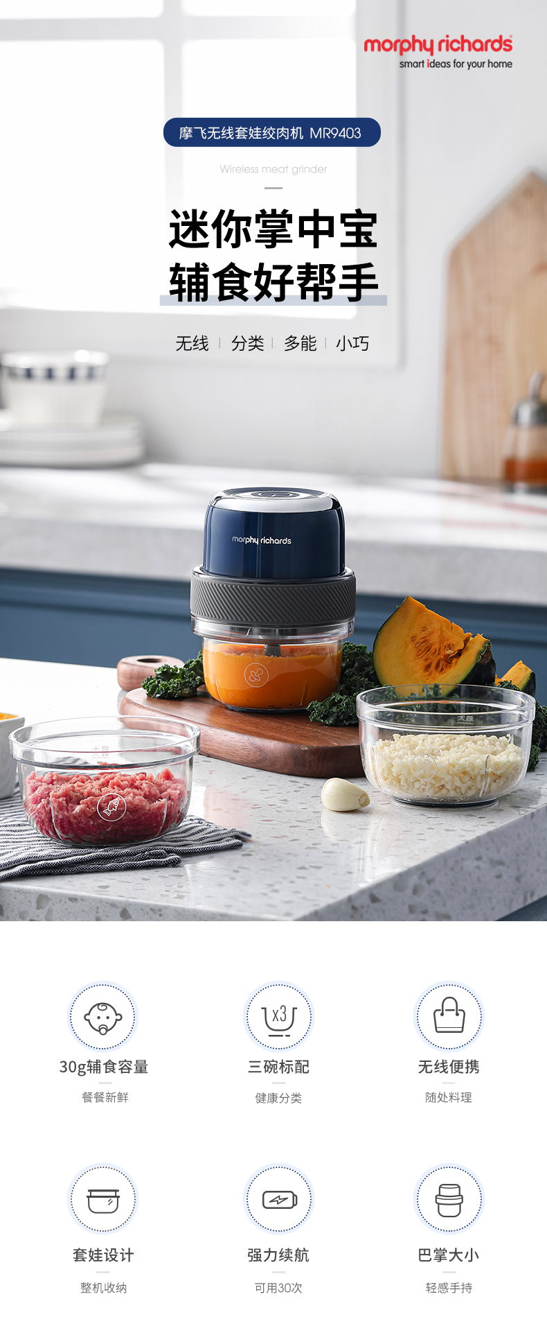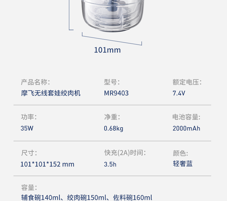 Morphy Richards摩飞无线套娃绞肉机 MR9403