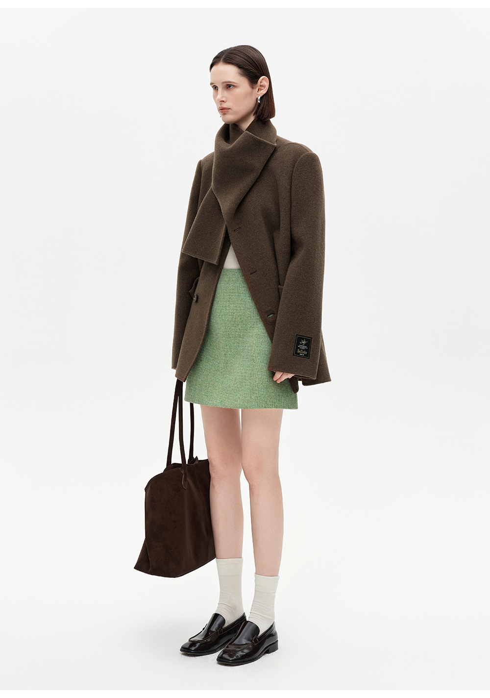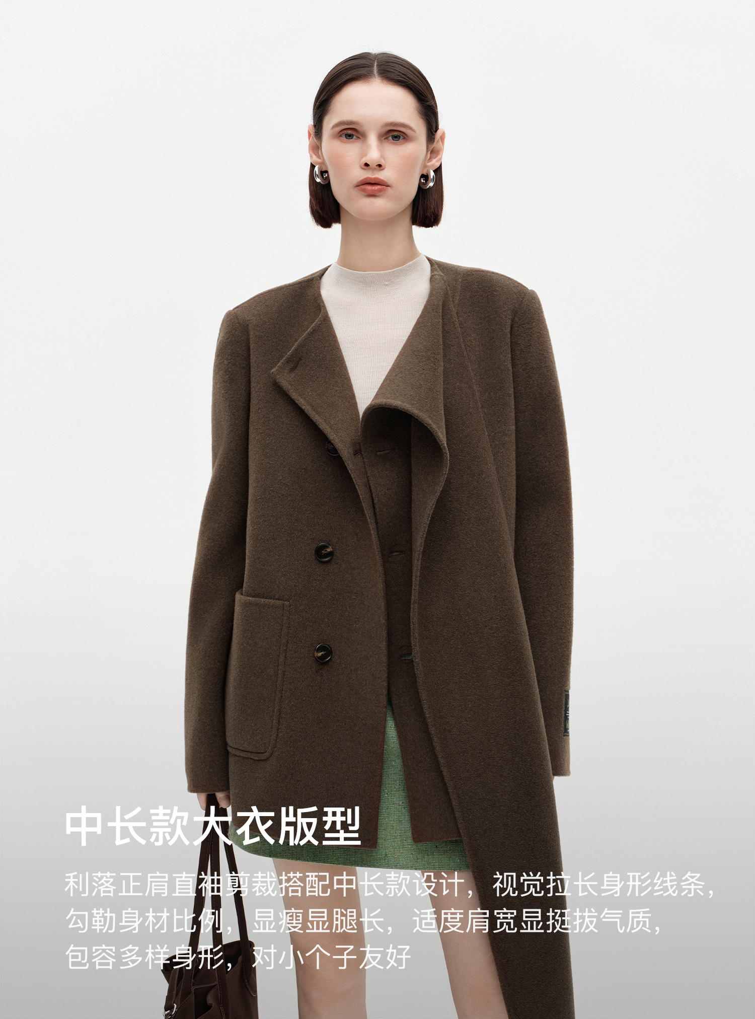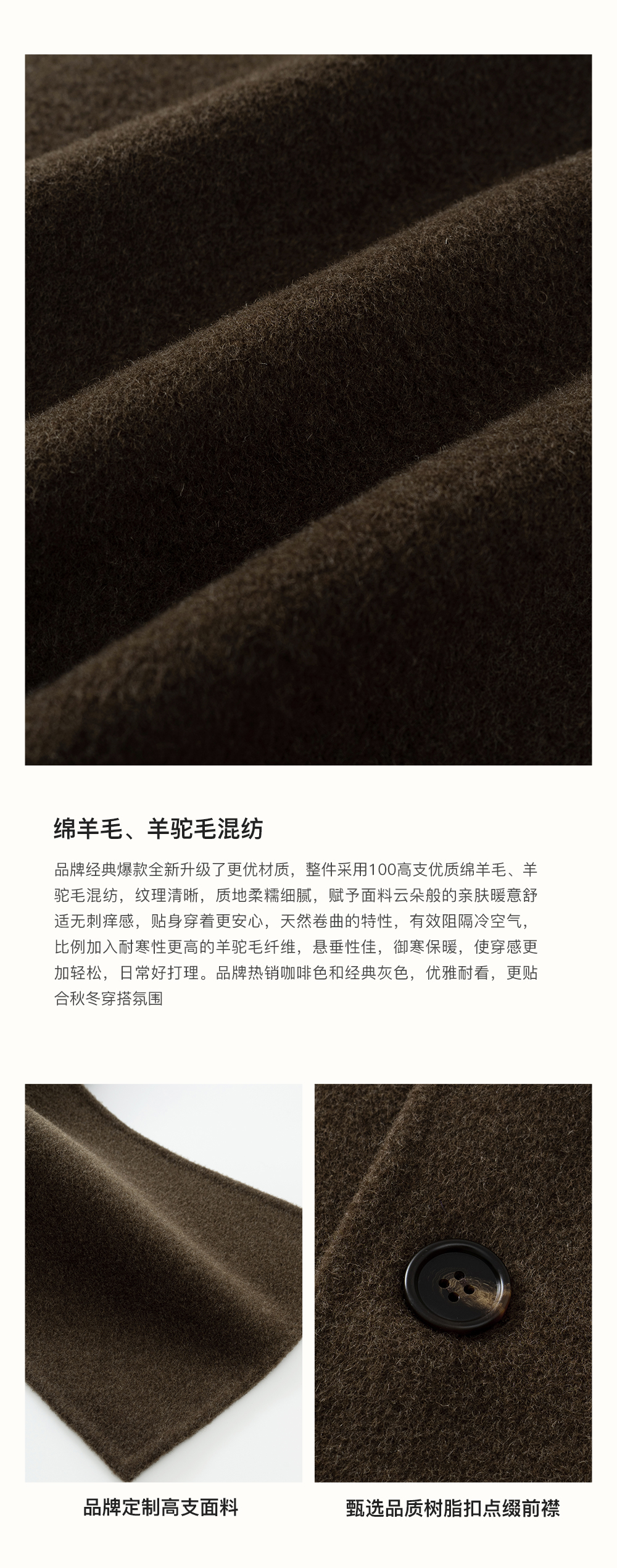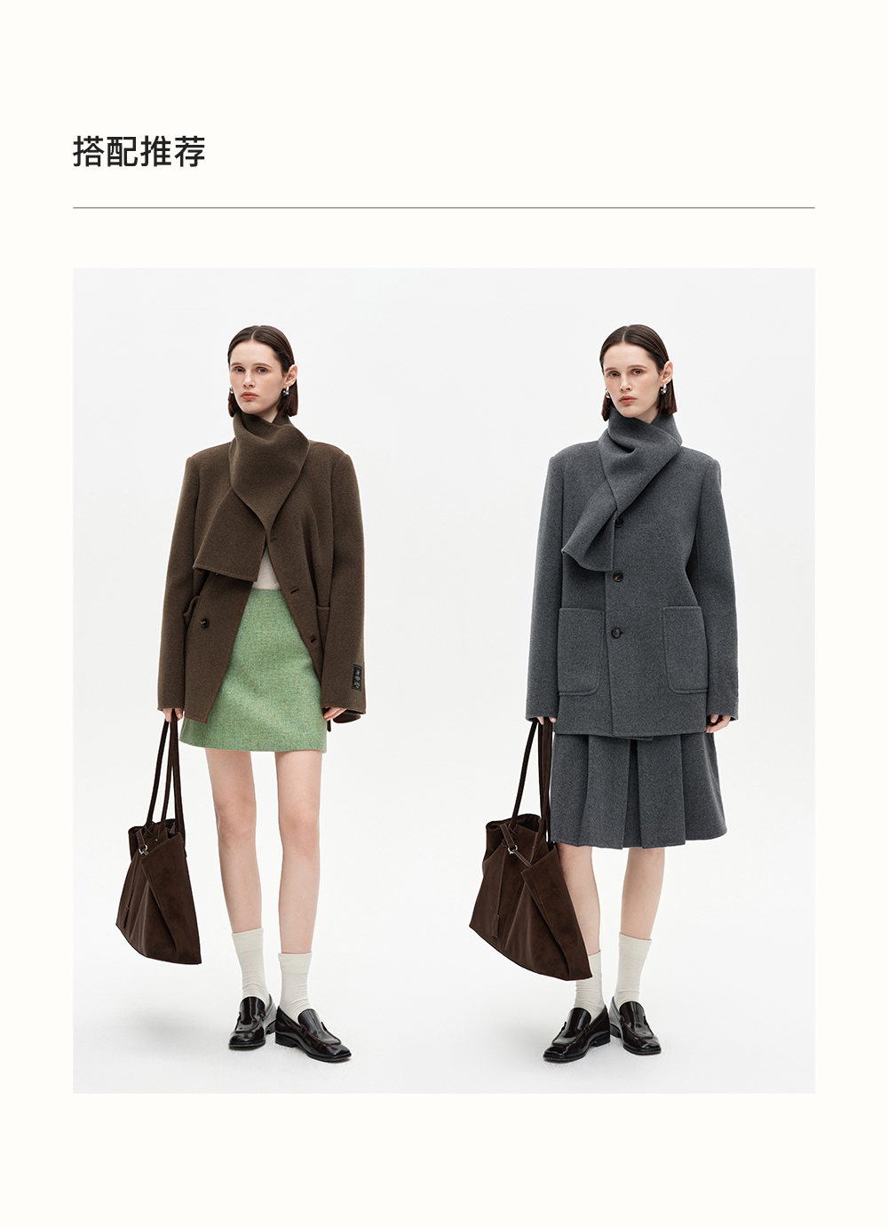 SELFWHO绵羊毛混纺围巾领双面呢外套女2025冬新款中长款毛呢大衣