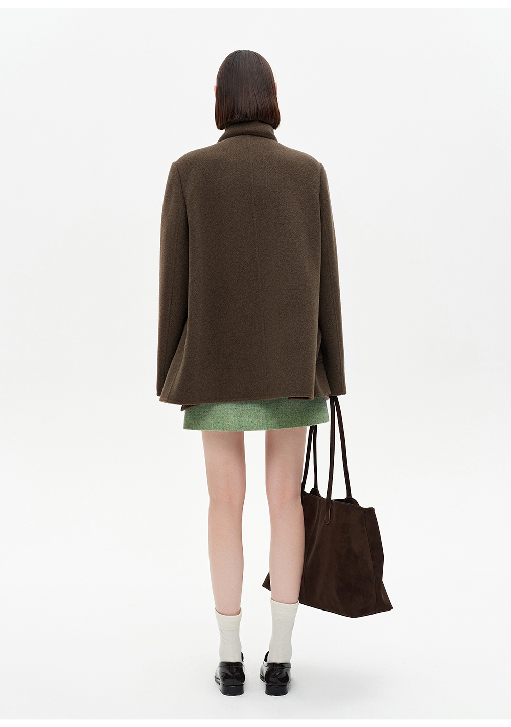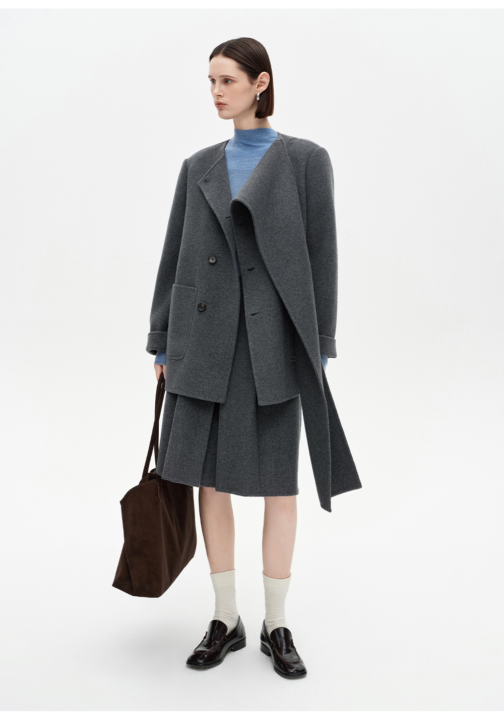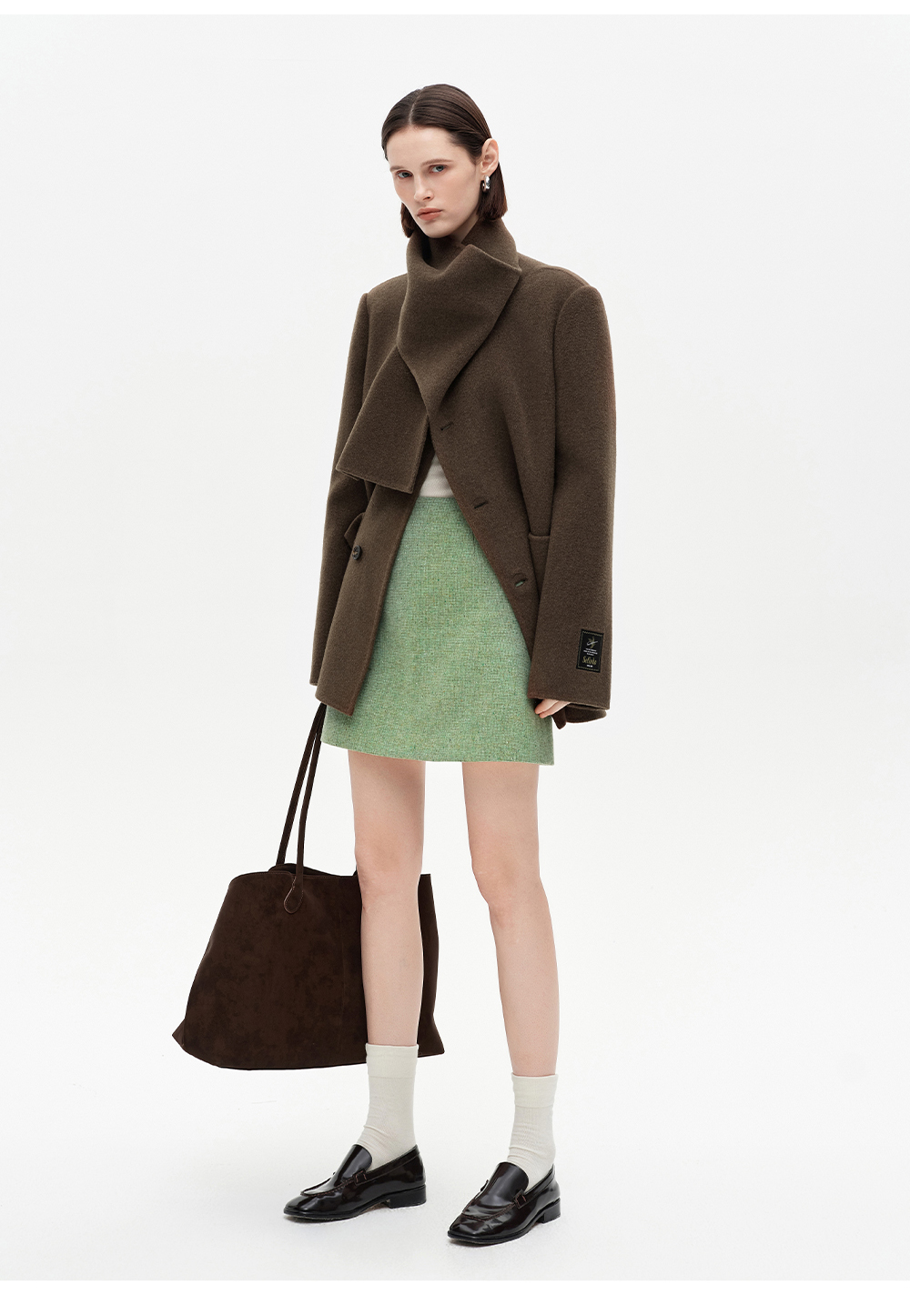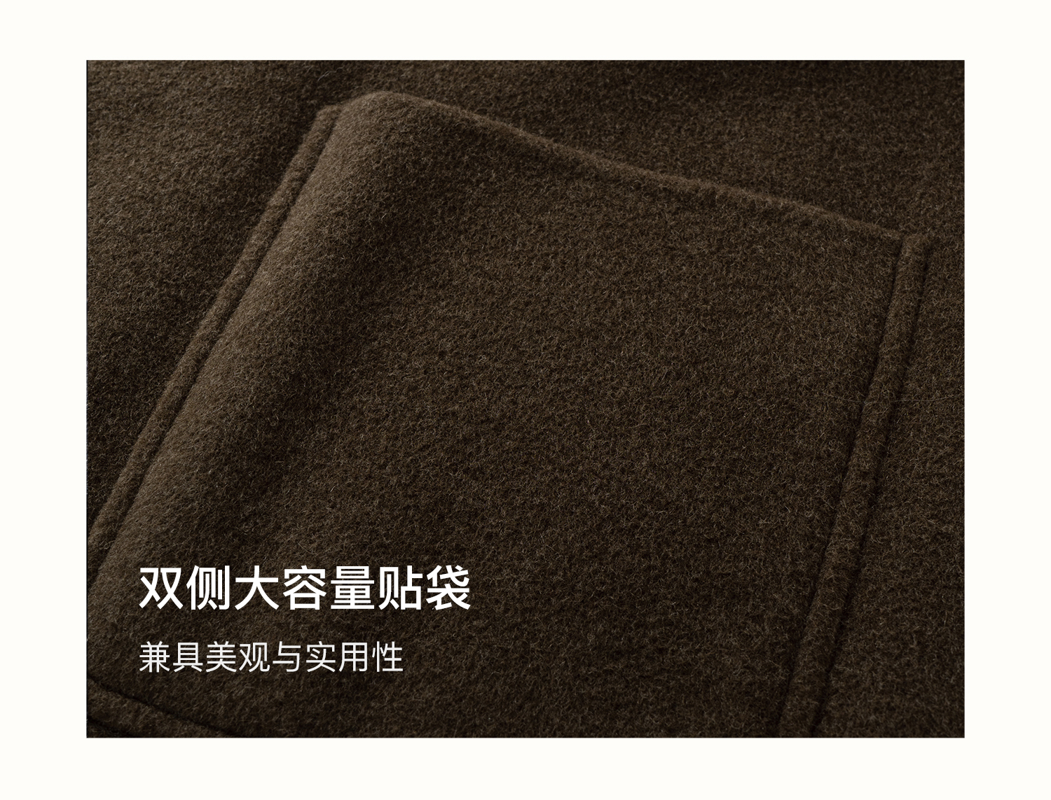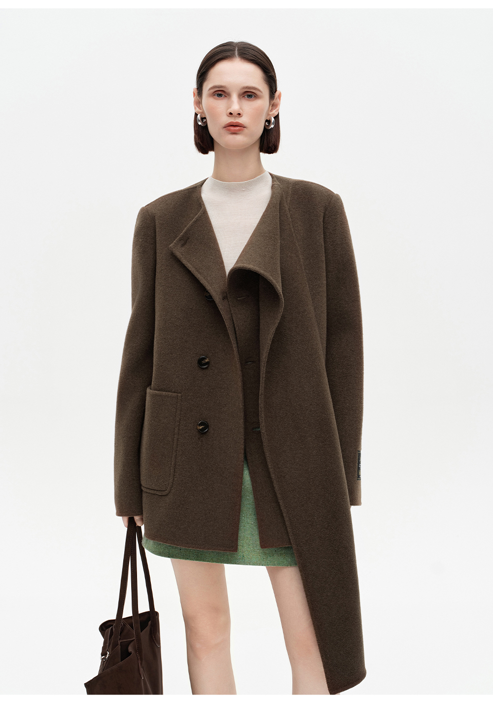SELFWHO绵羊毛混纺围巾领双面呢外套女2025冬新款中长款毛呢大衣