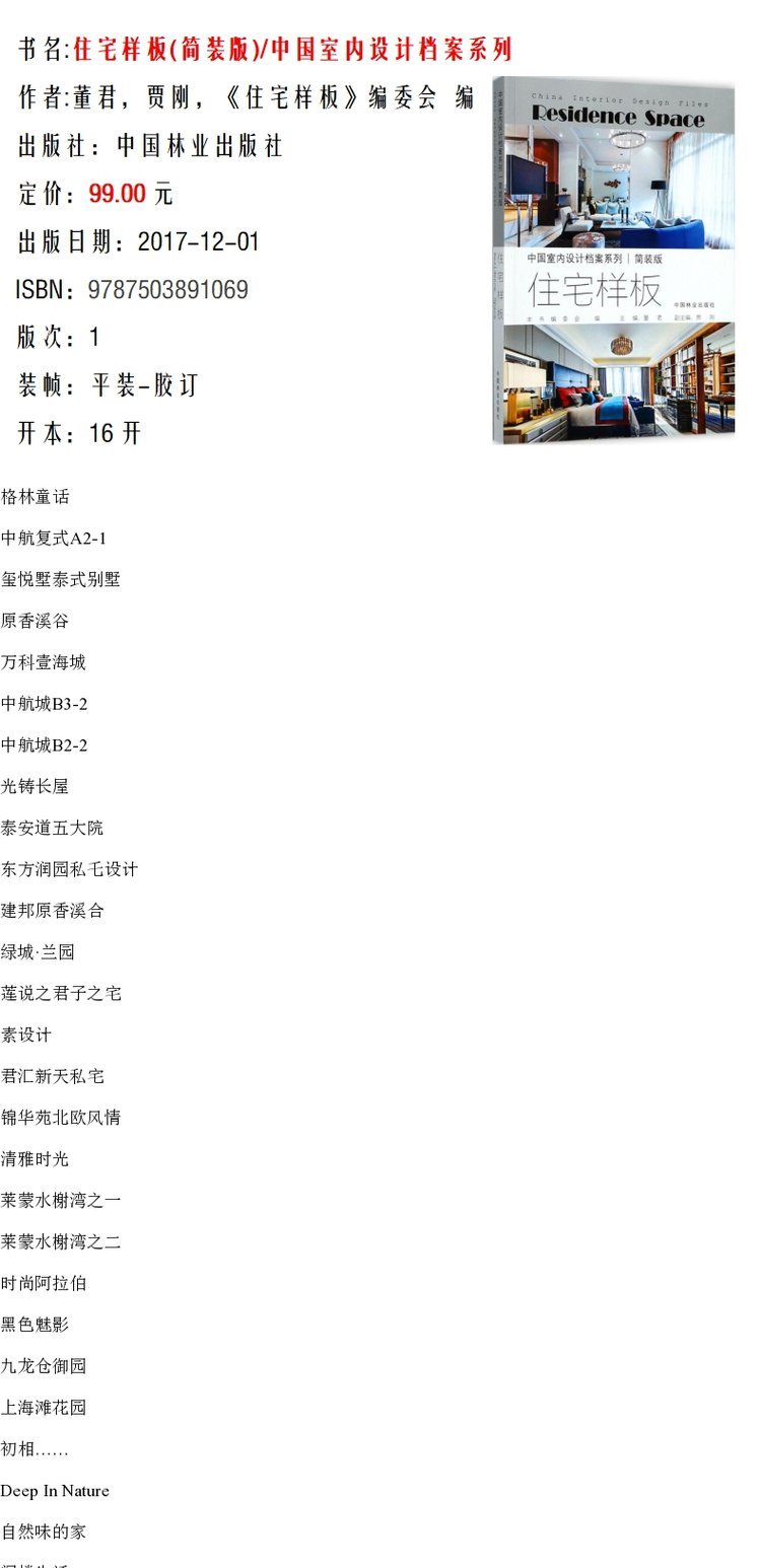 中国室内设计档案 住宅样板 9106 格林童话 泰式别墅 北欧风情 会馆小院 阁楼生活 设计案例赏析 中国林业出版社畅销书籍