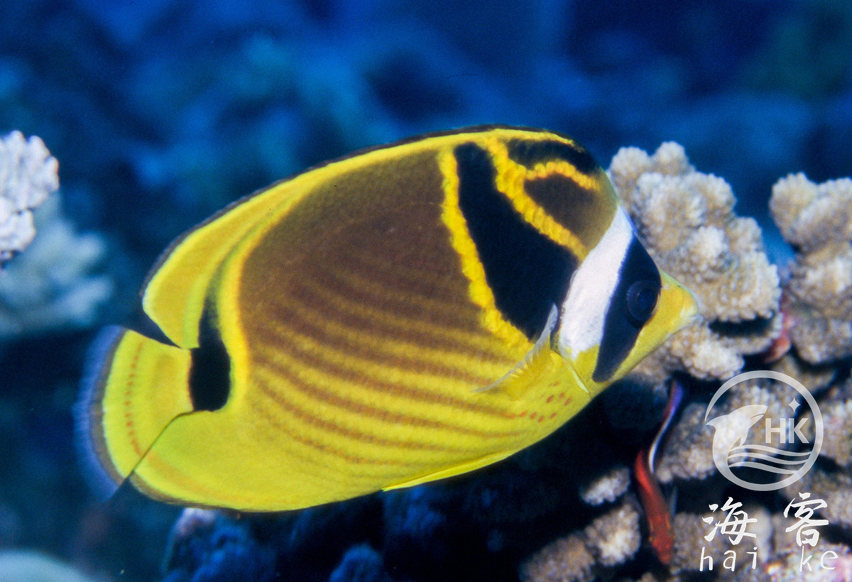 也叫红海白眉蝶、白眉。月眉蝶身体是由黄、桔黄组成,但身体上半部暗些。眼睛周围是黑的,显得旁边月牙形的白色很突出。直译是浣熊蝶,真的很像浣熊。