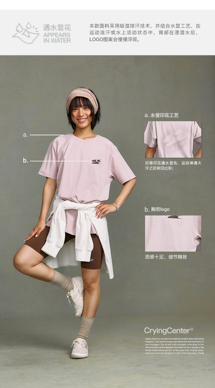 CryingCenter 水显logo速干合身运动跑步短T恤 哭喊中心