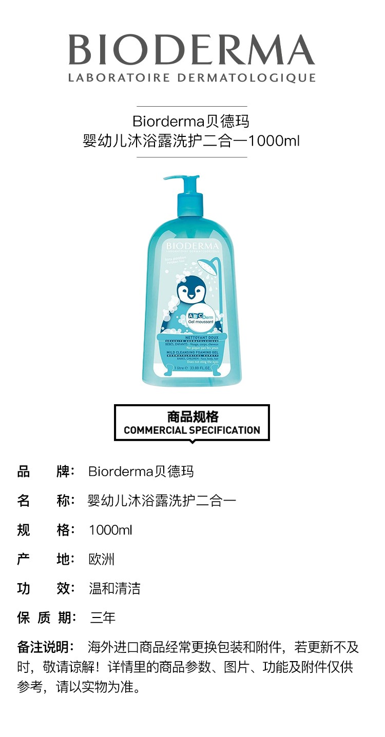 【保税仓】贝德玛贝妍贝护婴幼儿沐浴露1L(效期26.10月)