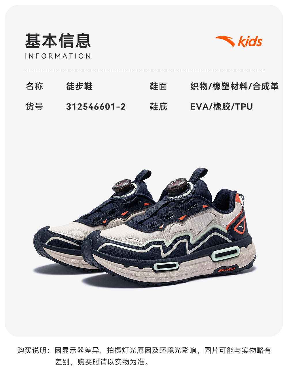 安踏儿童冬季新款男大童趣野户外运动鞋防滑耐磨时尚百搭舒适312546601