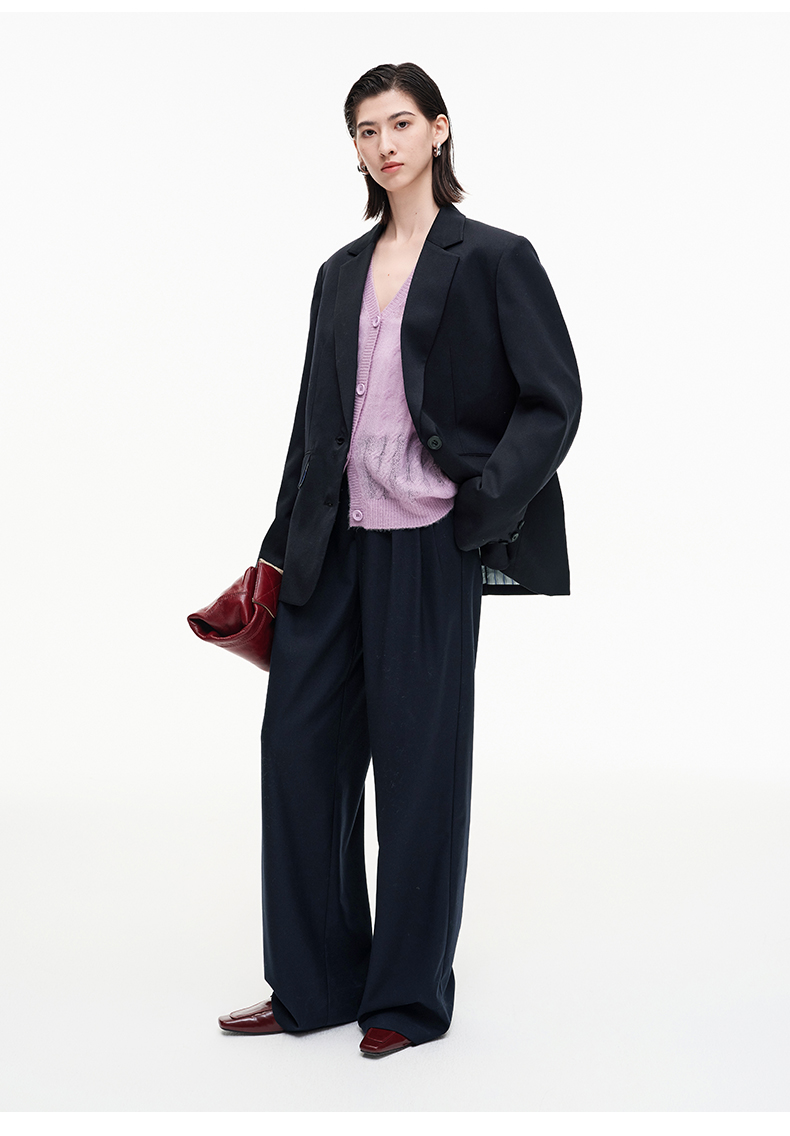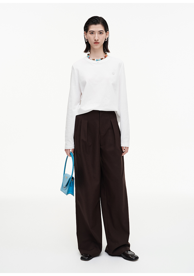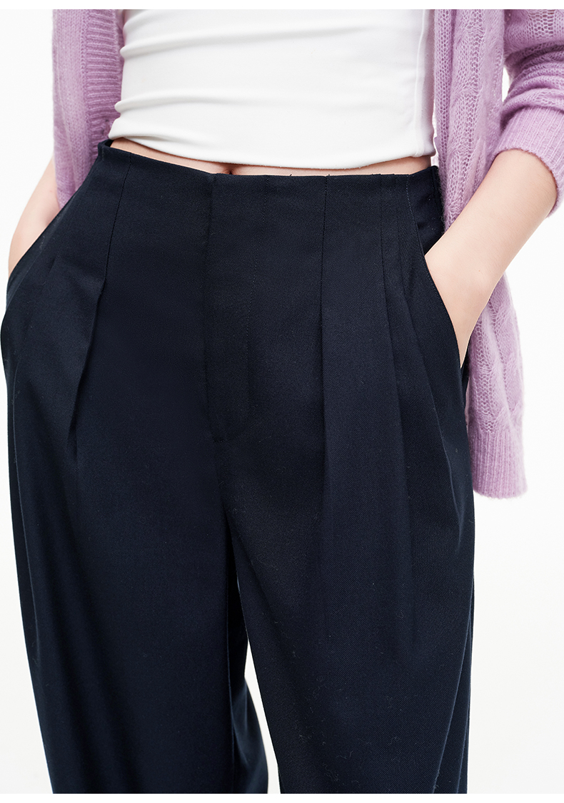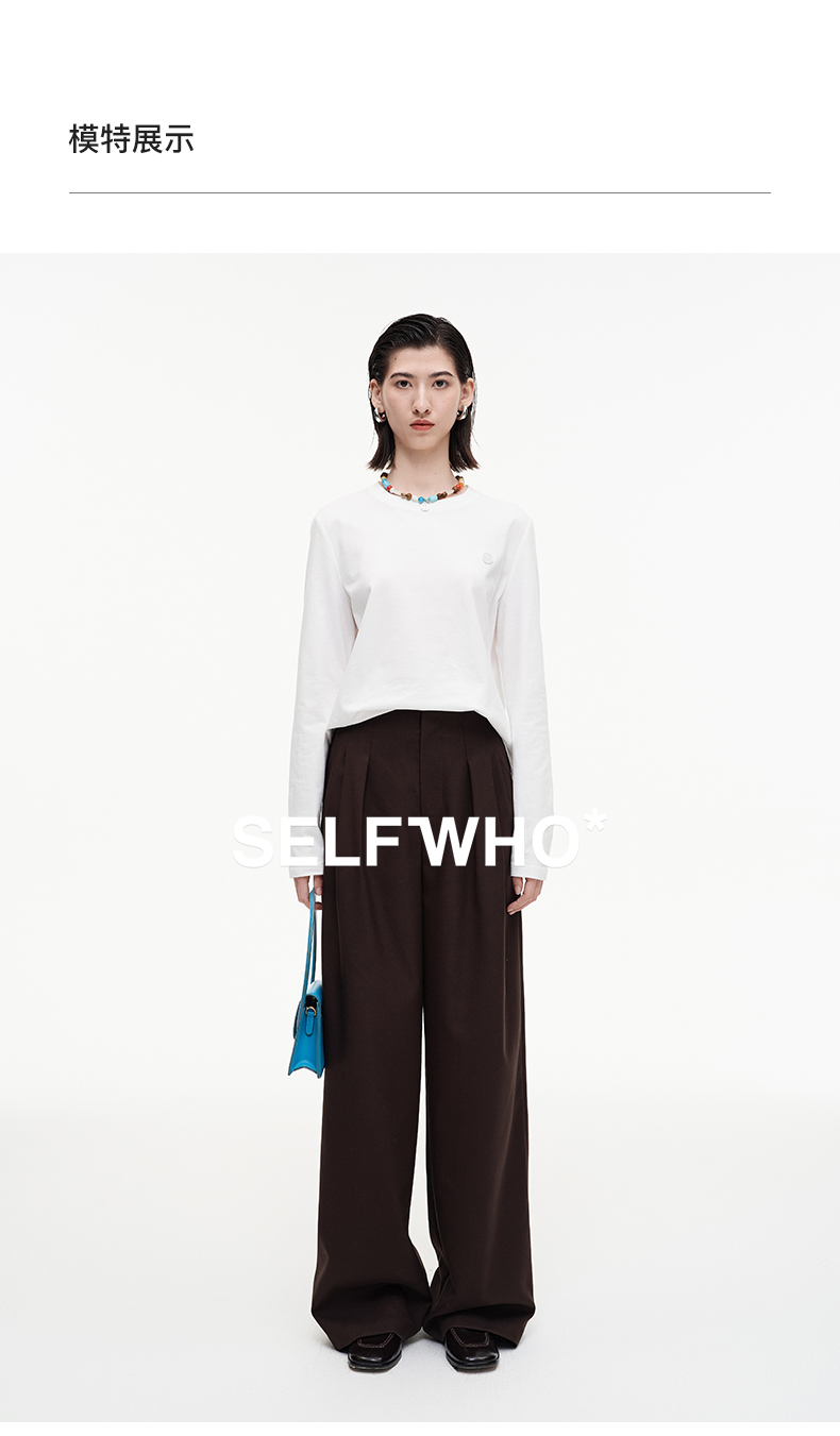 SELFWHO羊毛混纺复古褶裥阔腿西裤女2025秋季新款宽松垂感休闲裤
