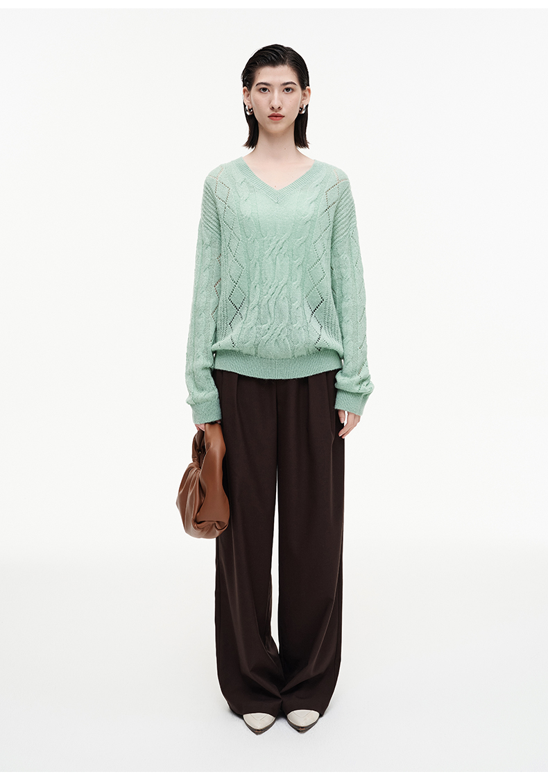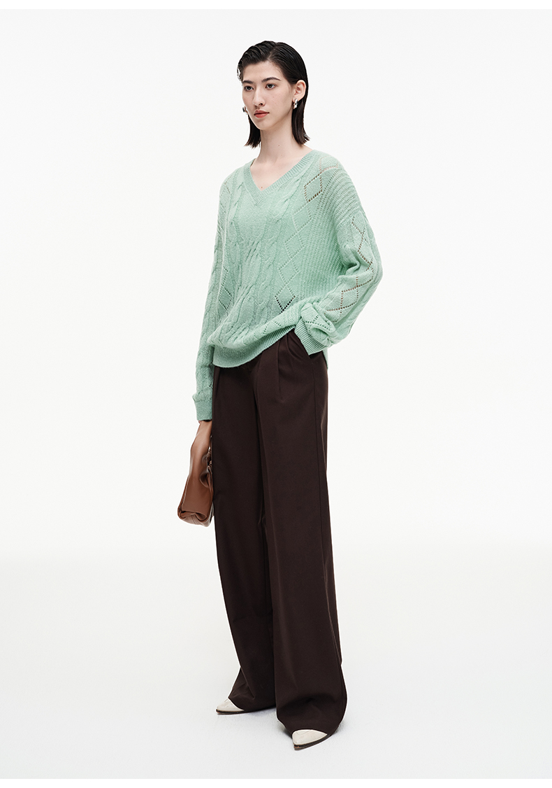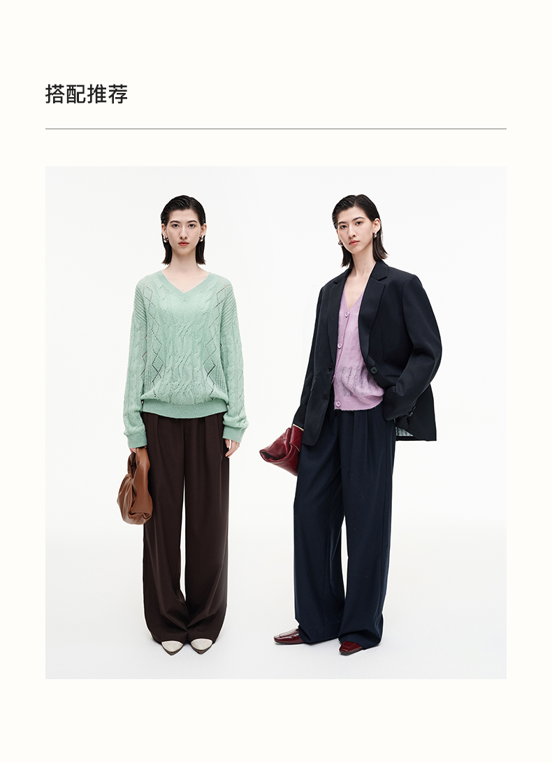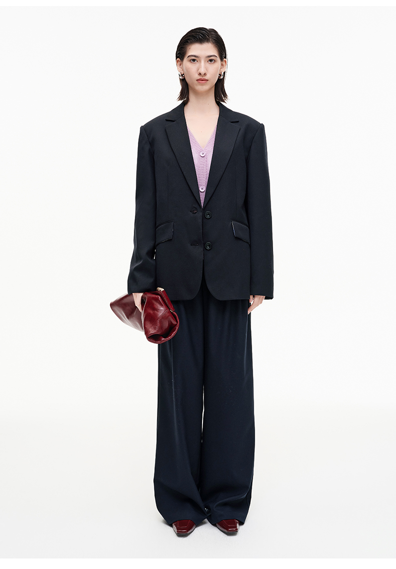 SELFWHO羊毛混纺复古褶裥阔腿西裤女2025秋季新款宽松垂感休闲裤