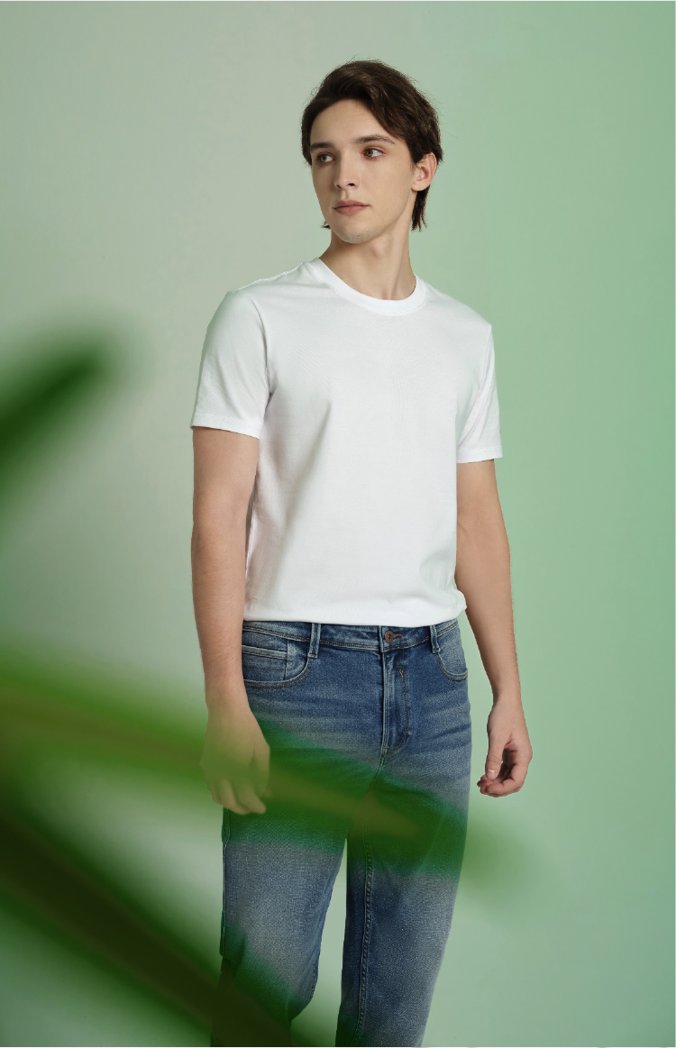 拇指白小牛男士随身暖锥形牛仔长裤无限系列
