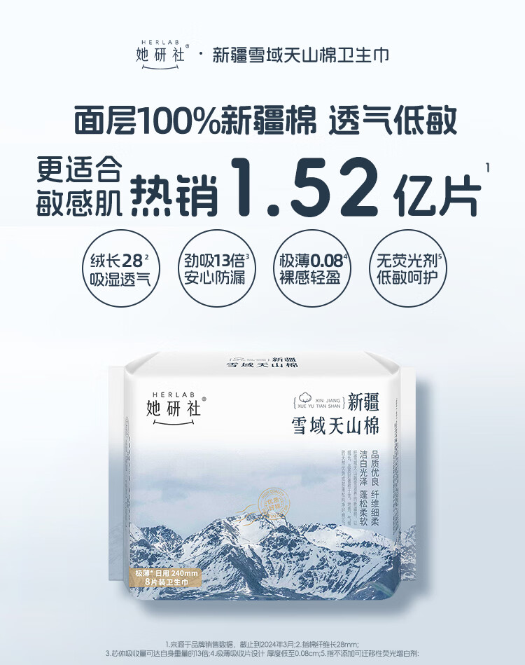 她研社 新疆棉超薄卫生巾日用240mm*8片