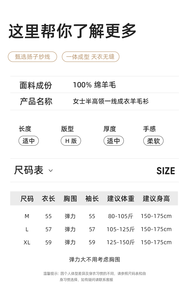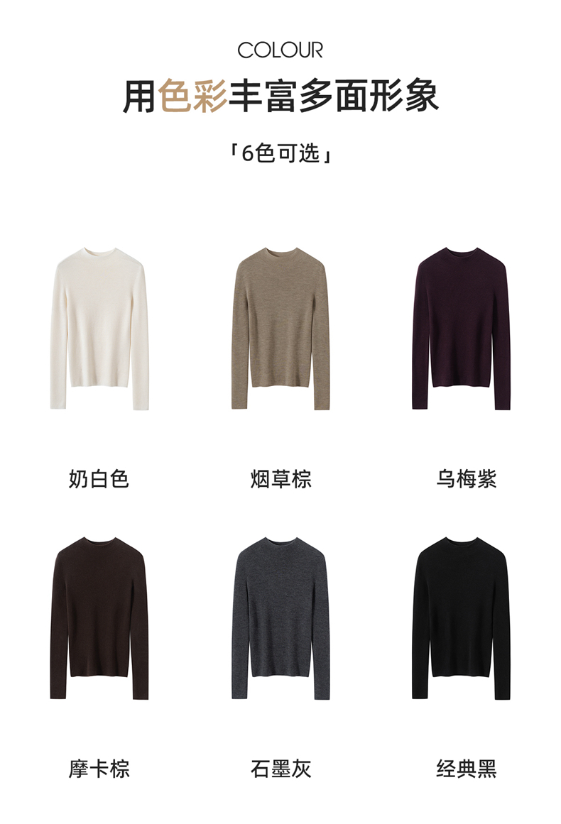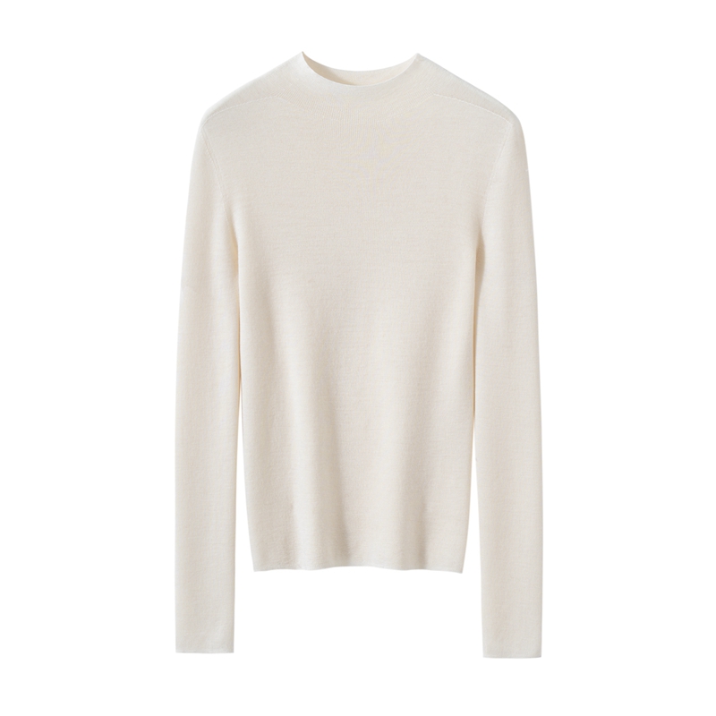 素胚云织~15.5微米黄金羊毛德国扬子纱半高领长袖打底衫女