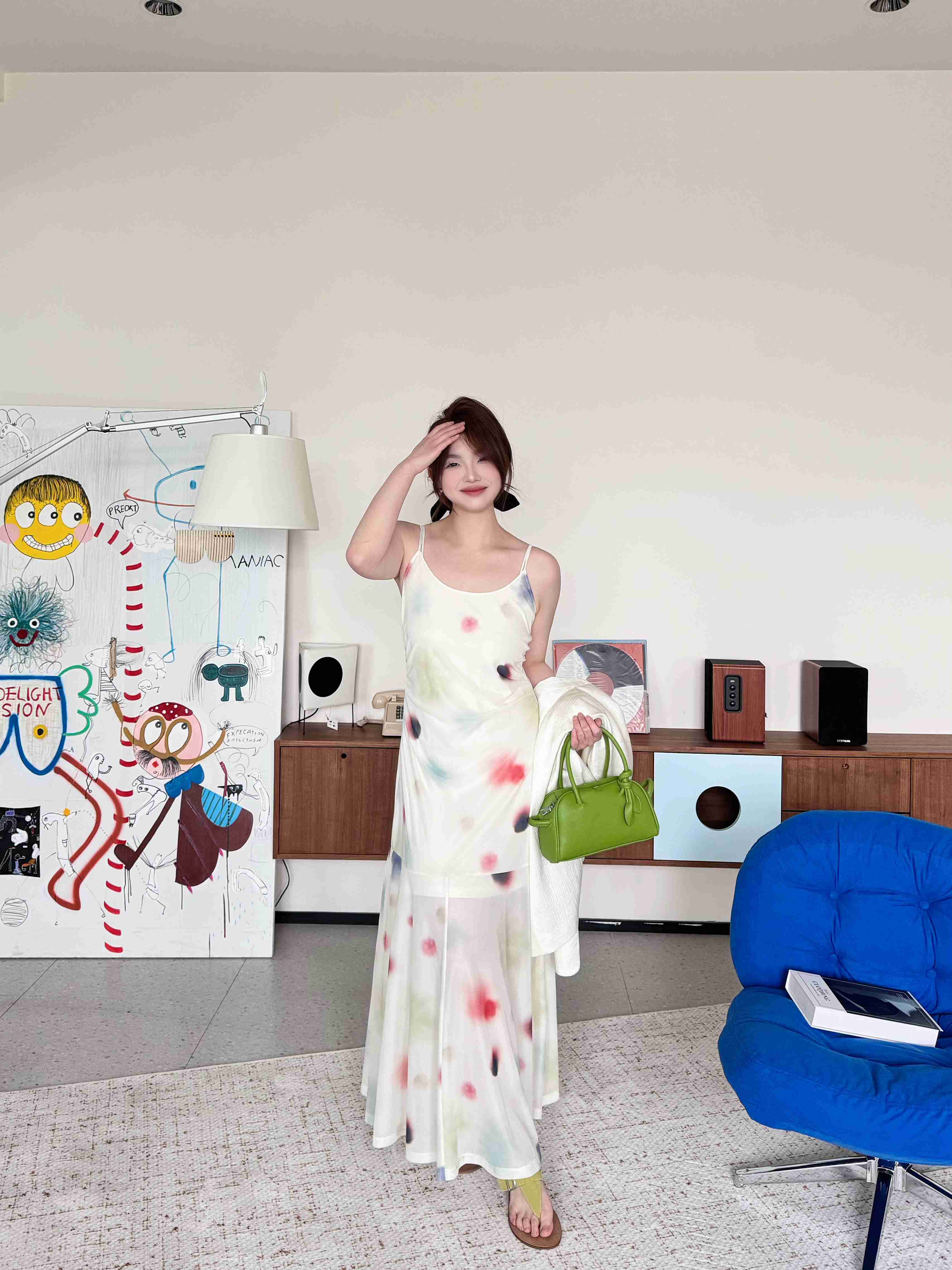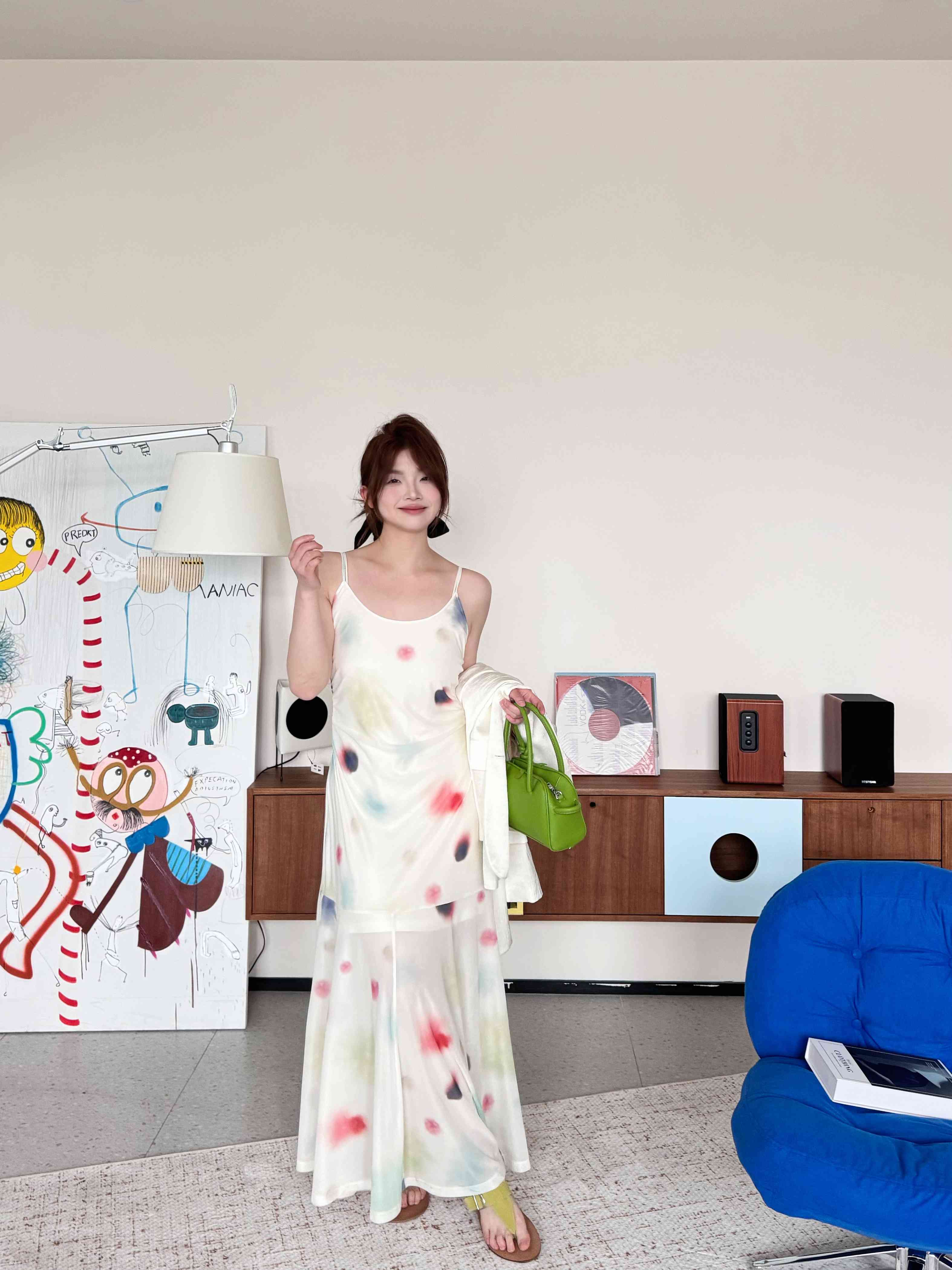 2025新品 蕾蕾同款【美神降临】设计感小众水彩U领吊带收腰鱼尾连衣裙