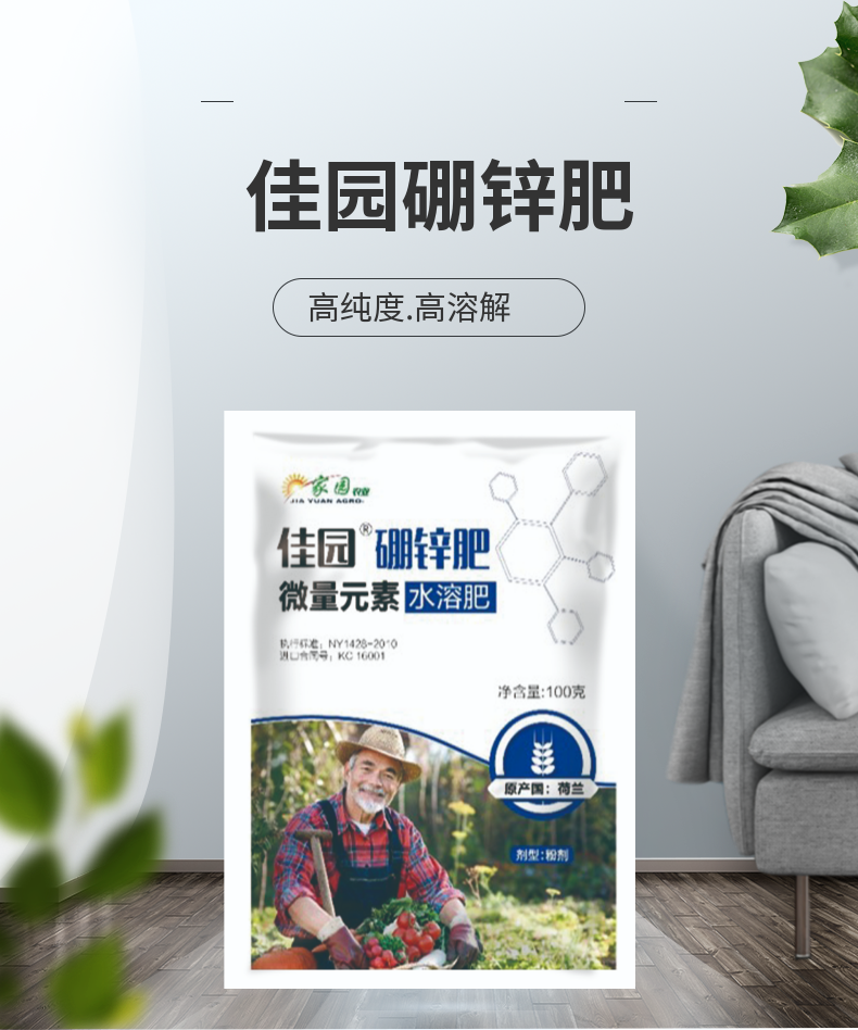 佳园硼锌肥 硼锌同补 微量元素水溶肥 100克/袋