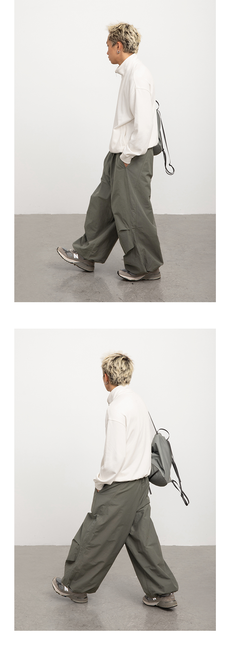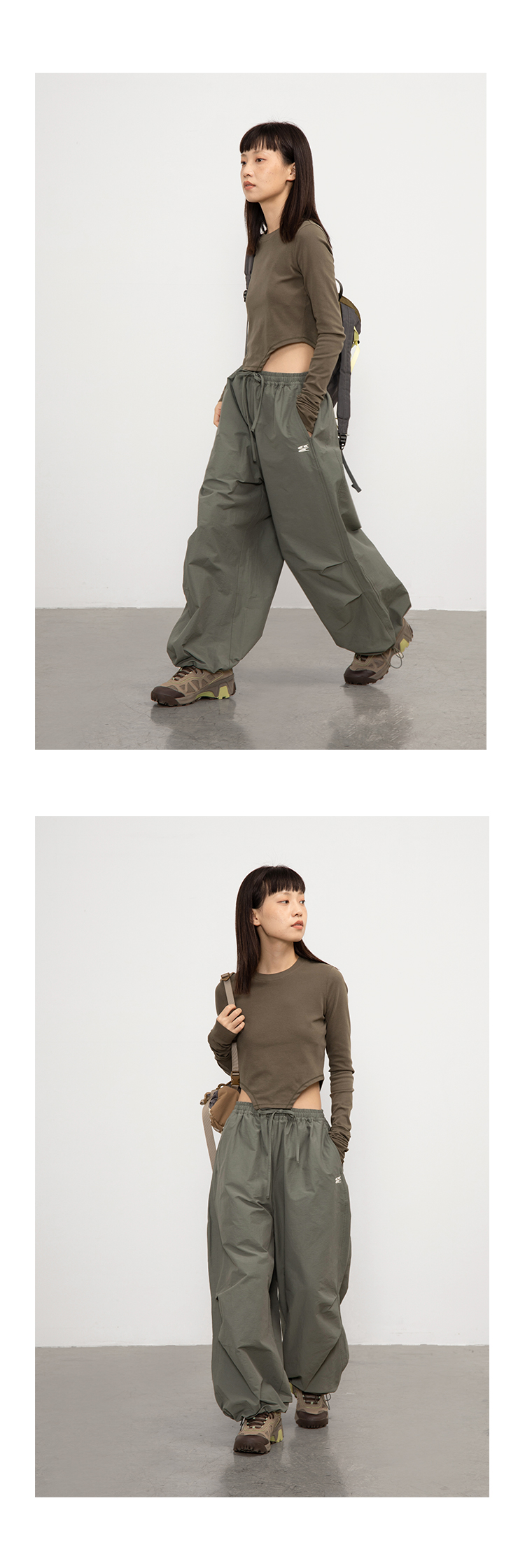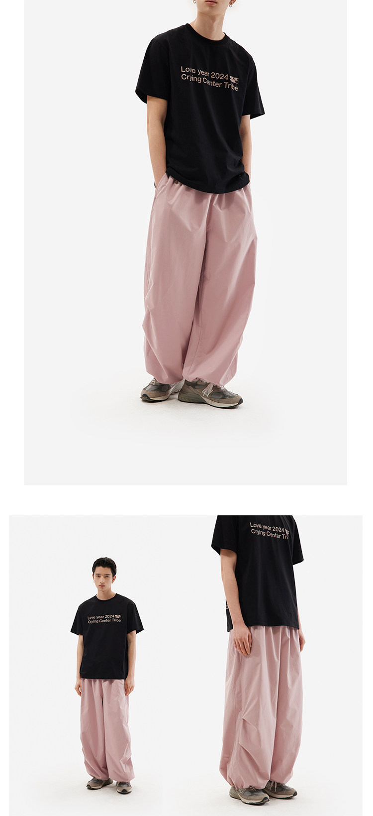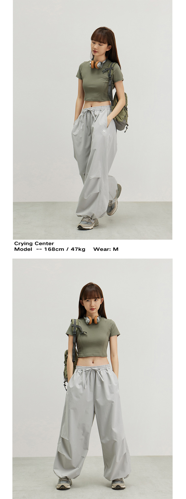 CryingCenter 灰绿 美式风衣料阔腿裤橡筋运动裤空气裤 哭喊中心
