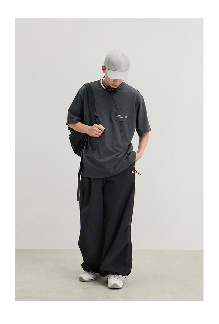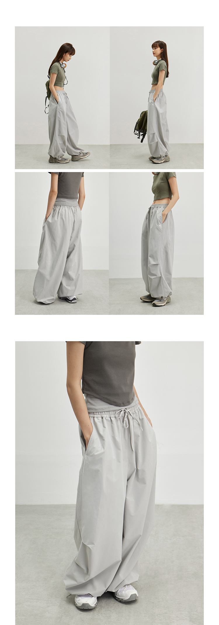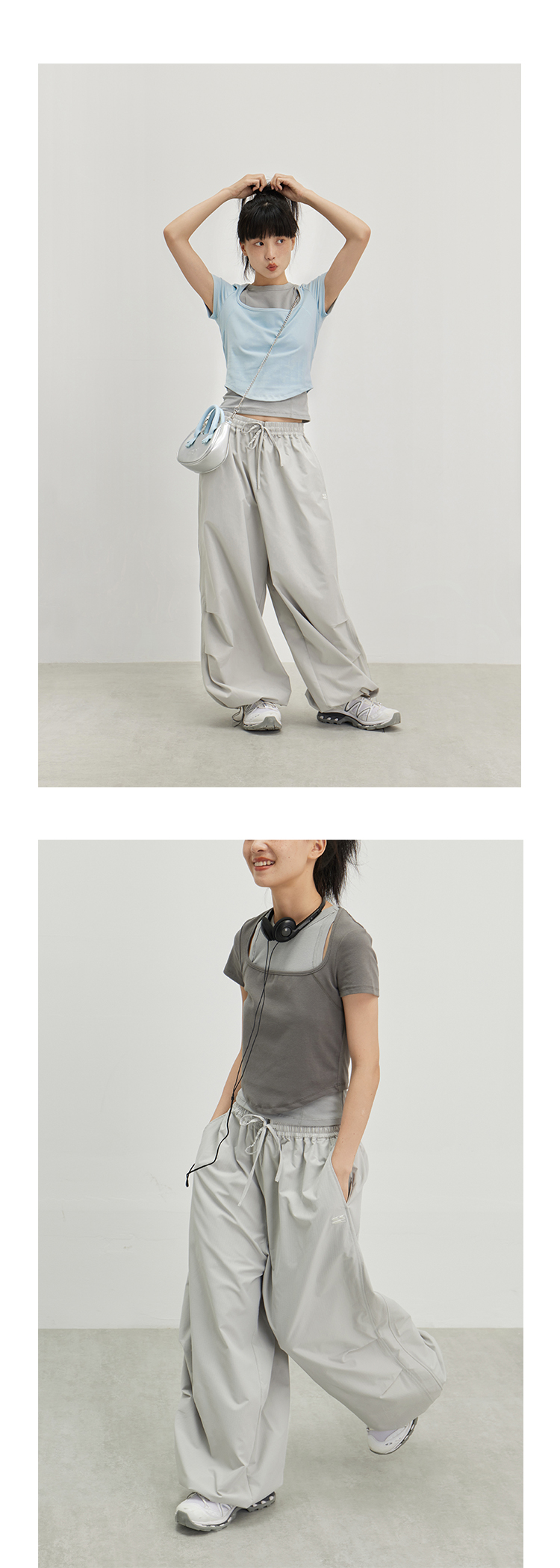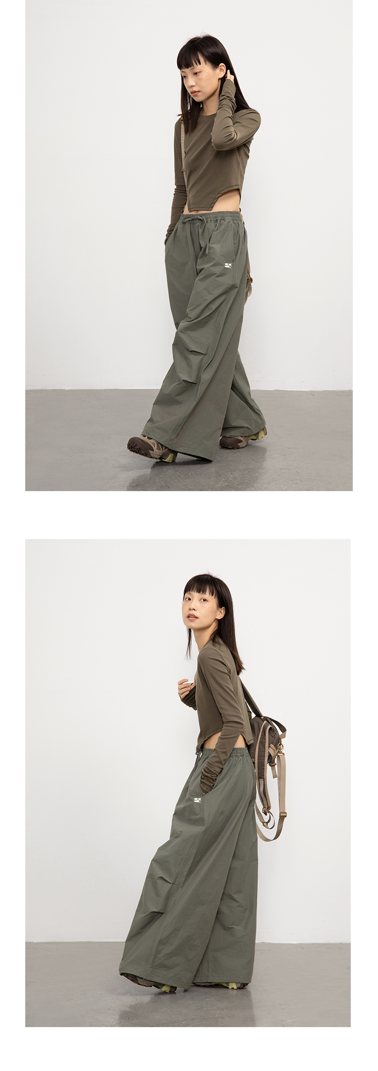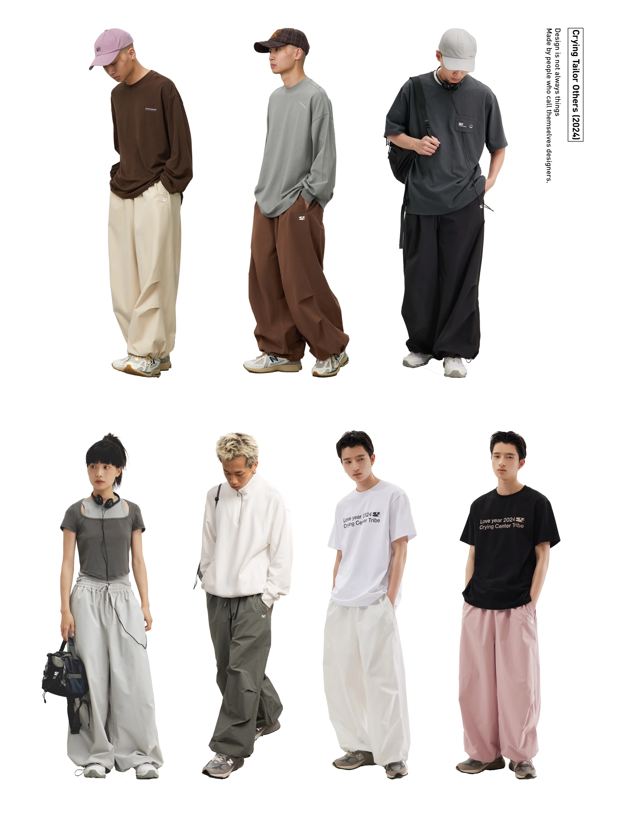 CryingCenter 灰绿 美式风衣料阔腿裤橡筋运动裤空气裤 哭喊中心