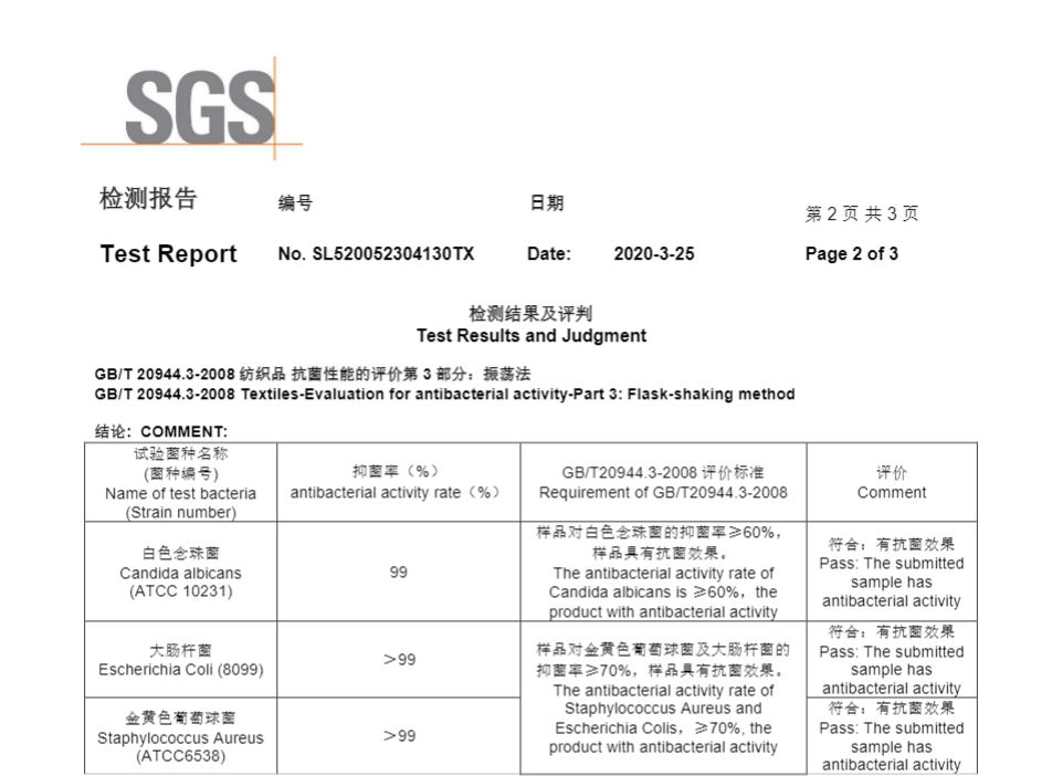 原材料三项抑菌检测报告中它的抑菌率能高达99%